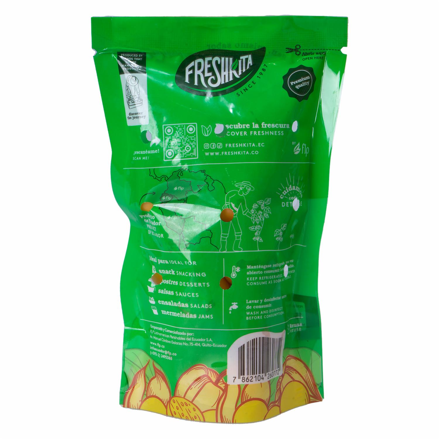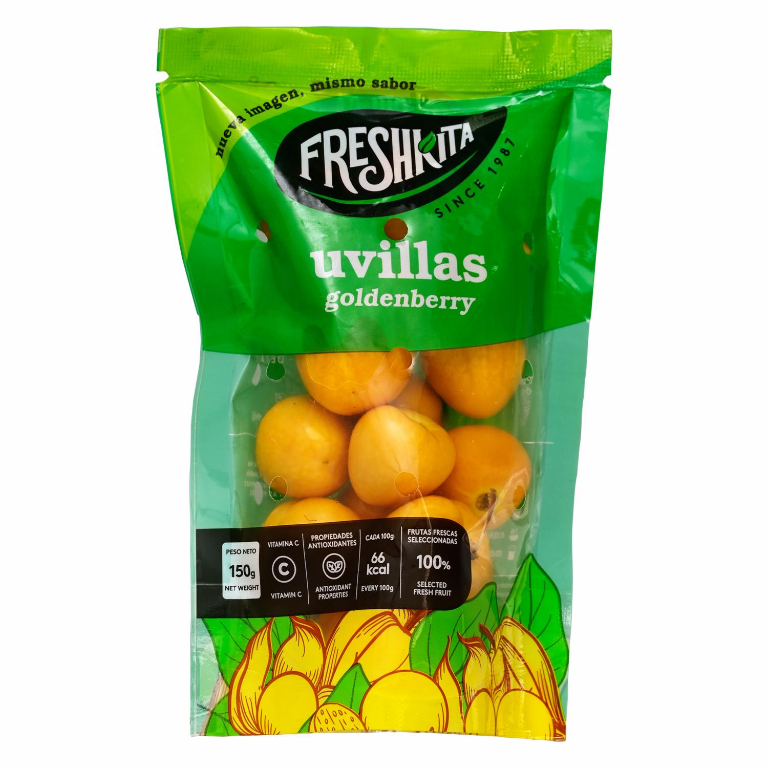 - La "Uvilla Selecta Freshkita 150 g" es una presentación de uvillas ofrecida por la marca Freshkita, que se encuentra en envases de 150 gramos