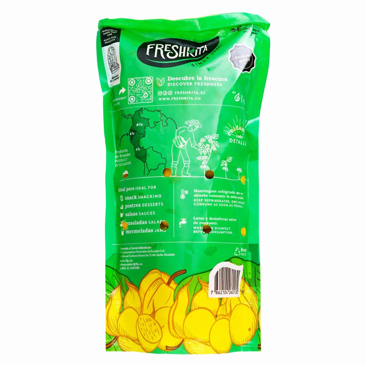 • La "Uvilla Selecta Freshkita 2 x 420 g" es una presentación de uvillas ofrecida por la marca Freshkita, que se encuentra en paquetes de 2 envases de 420 gramos cada uno