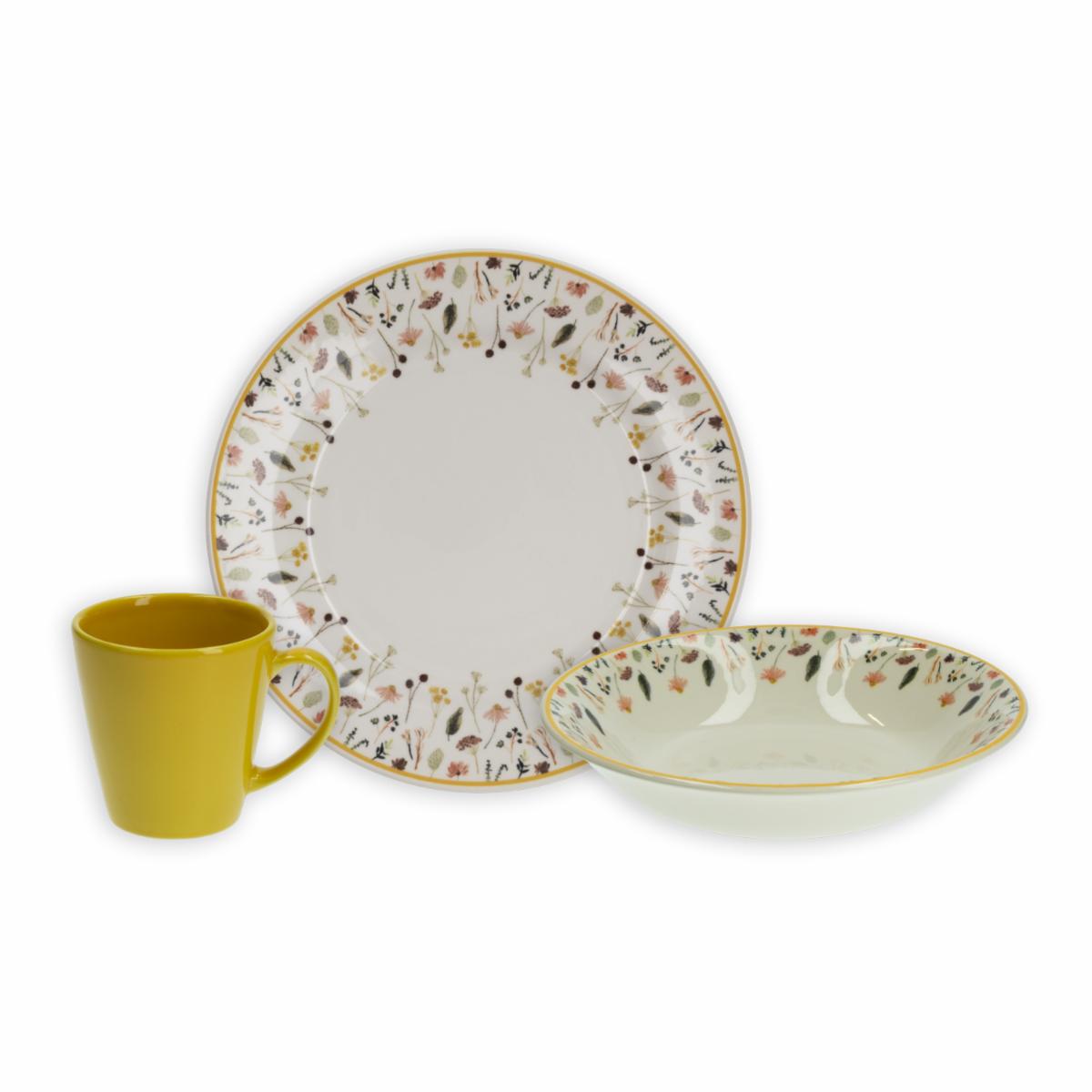 • Incluye: 4 Plato Pando Ashley, 24.2 cm 4 Plato Hondo Ashley, 587.3 ml 4 Mug Esmalte , 300 ml