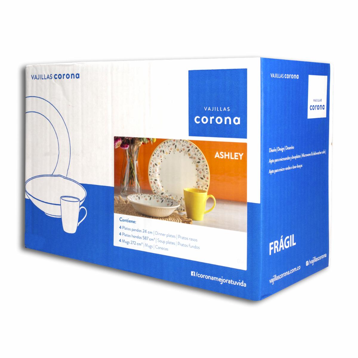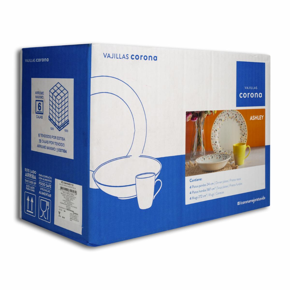 Vajilla 12 Piezas Redonda CORONA Ashley – CORONA. Disponible en nuestros locales. Precio y stock pueden variar según la tienda.