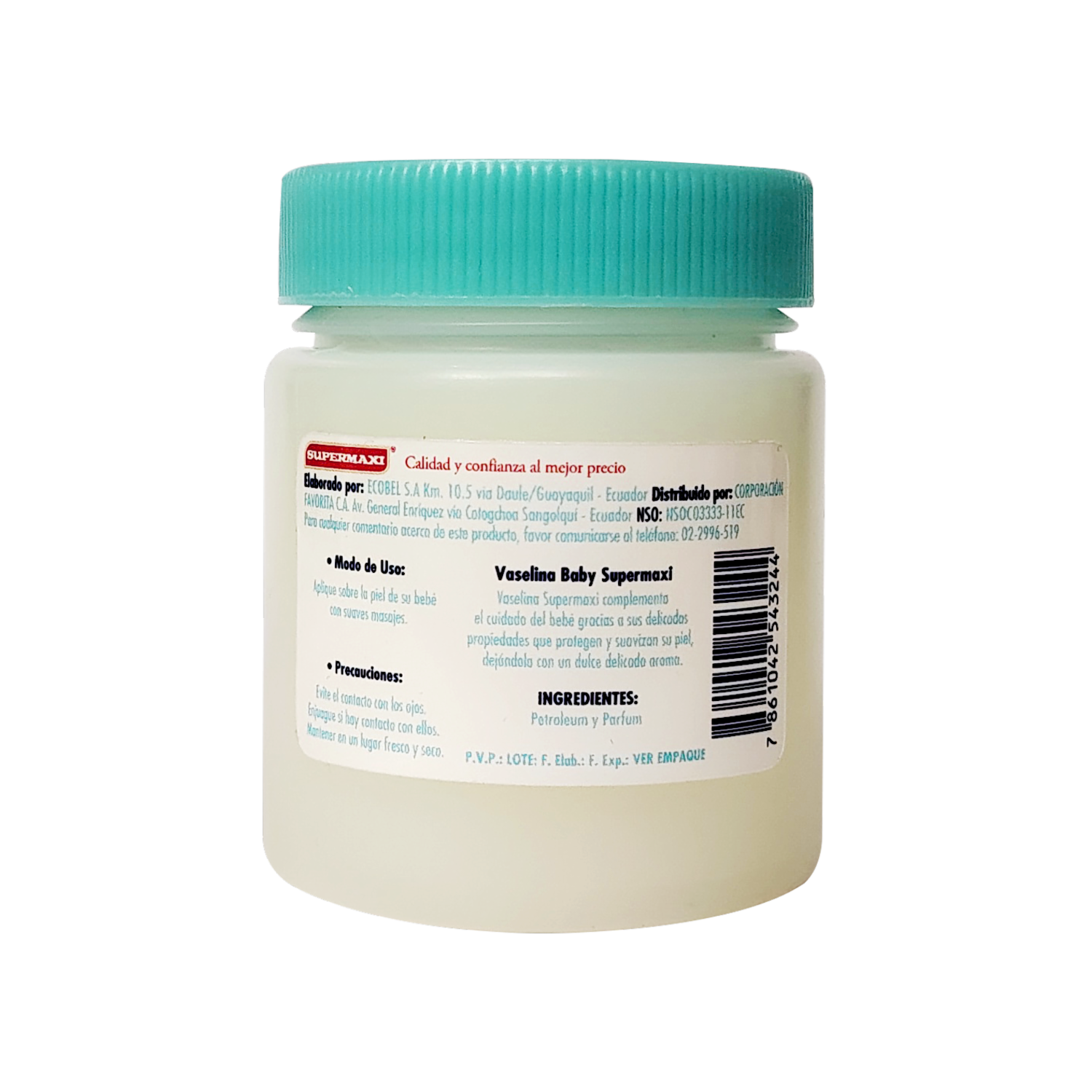 Vaselina Baby SUPERMAXI 100 G – SUPERMAXI. Disponible en nuestros locales. Precio y stock pueden variar según la tienda.