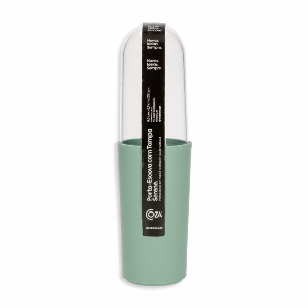 Vaso Porta Cepillos De Dientes De Plástico Con Tapa Color Verde Jade COZA 6,6 x 23,1 Cm