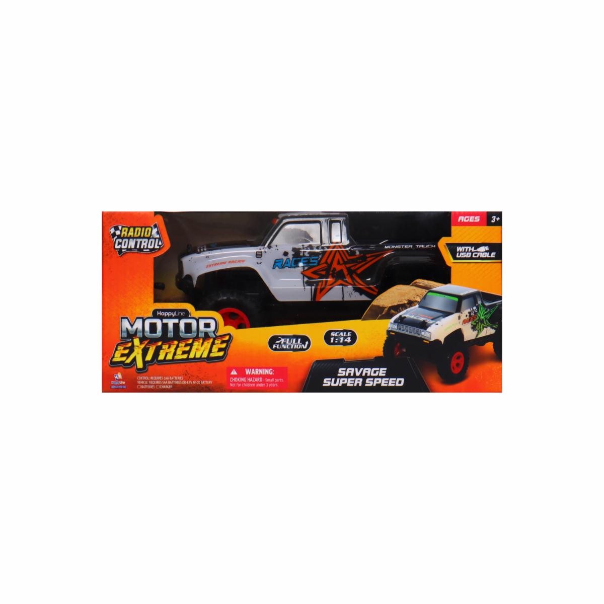 Vehículo R/C 1:14 Savage Super Speed MOTOR EXTREME Usa Pilas AA x 7 – MOTOR EXTREME. Disponible en nuestros locales. Precio y stock pueden variar según la tienda.