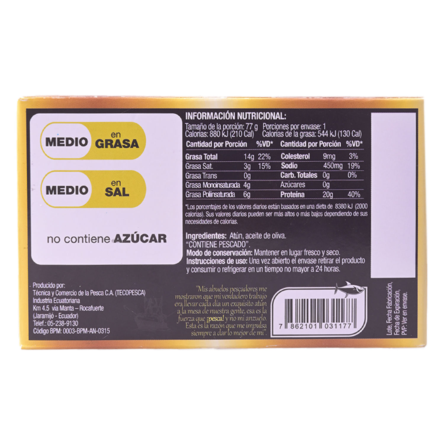 consultando preciosVentresca De Atún En Aceite Oliva TUNALIA 110 G – TUNALIA. Disponible en nuestros locales. Precio y stock pueden variar según la tienda.