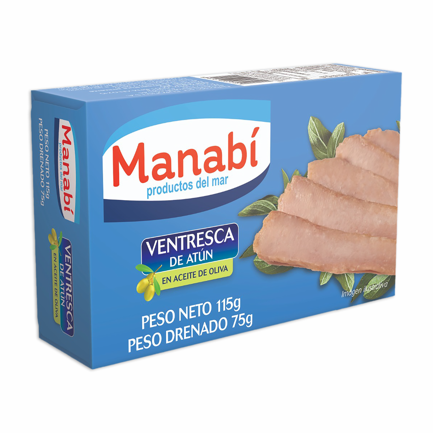 Ventresca En Oliva MANABÍ 115 g – MANABI. Disponible en nuestros locales. Precio y stock pueden variar según la tienda.