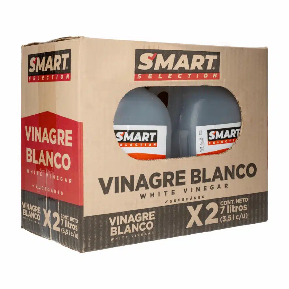 - El Vinagre Blanco Sucedáneo Smart Selection en presentación de 2 unidades de 3500 ml cada una es una opción versátil y económica para tus necesidades culinarias
