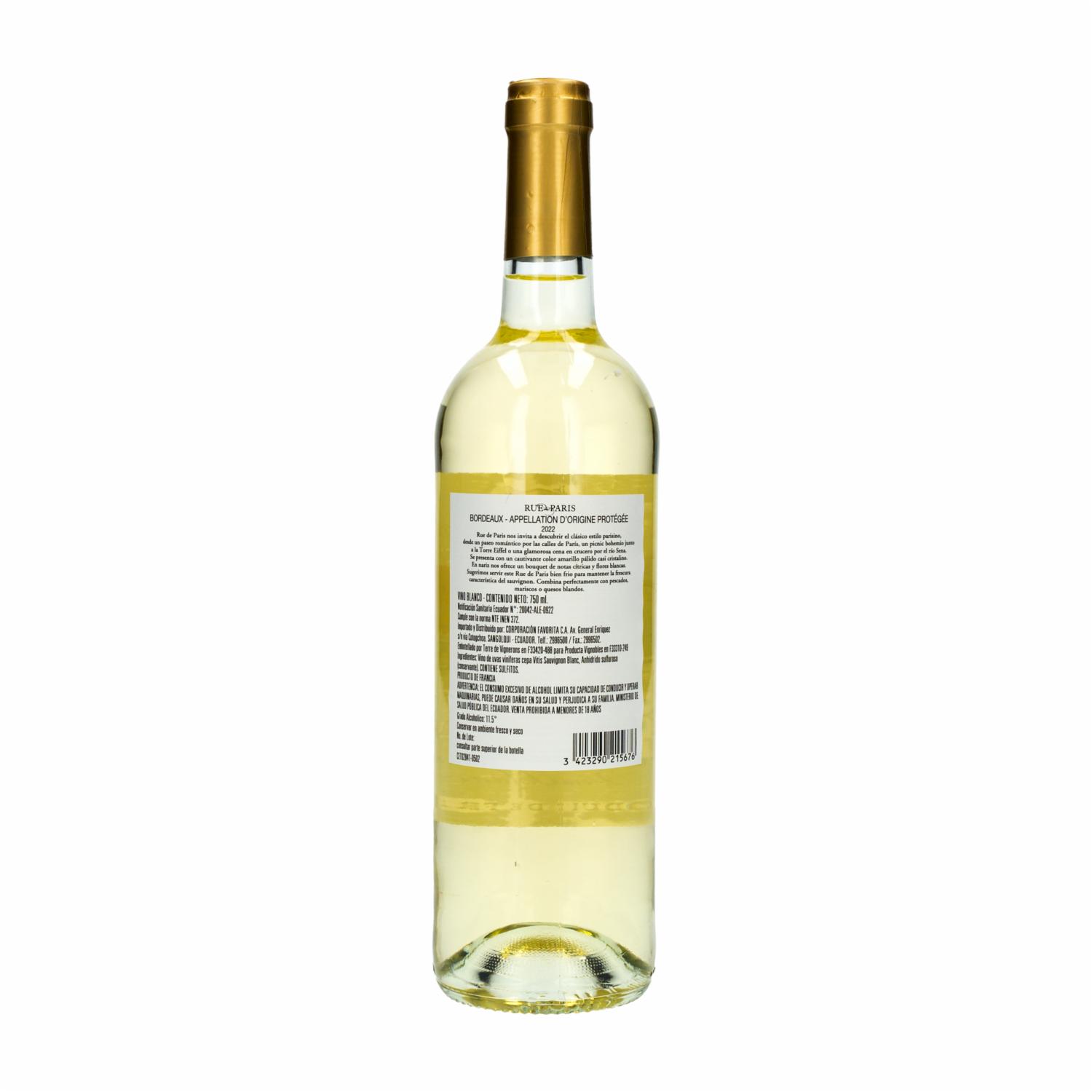 Vino Blanco Frances RUE DE PARIS 750 Ml
