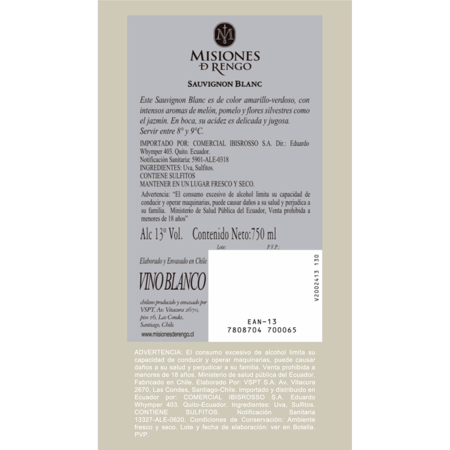 Vino Blanco Sauvignon Blanc MISIONES D RENGO 750 ml