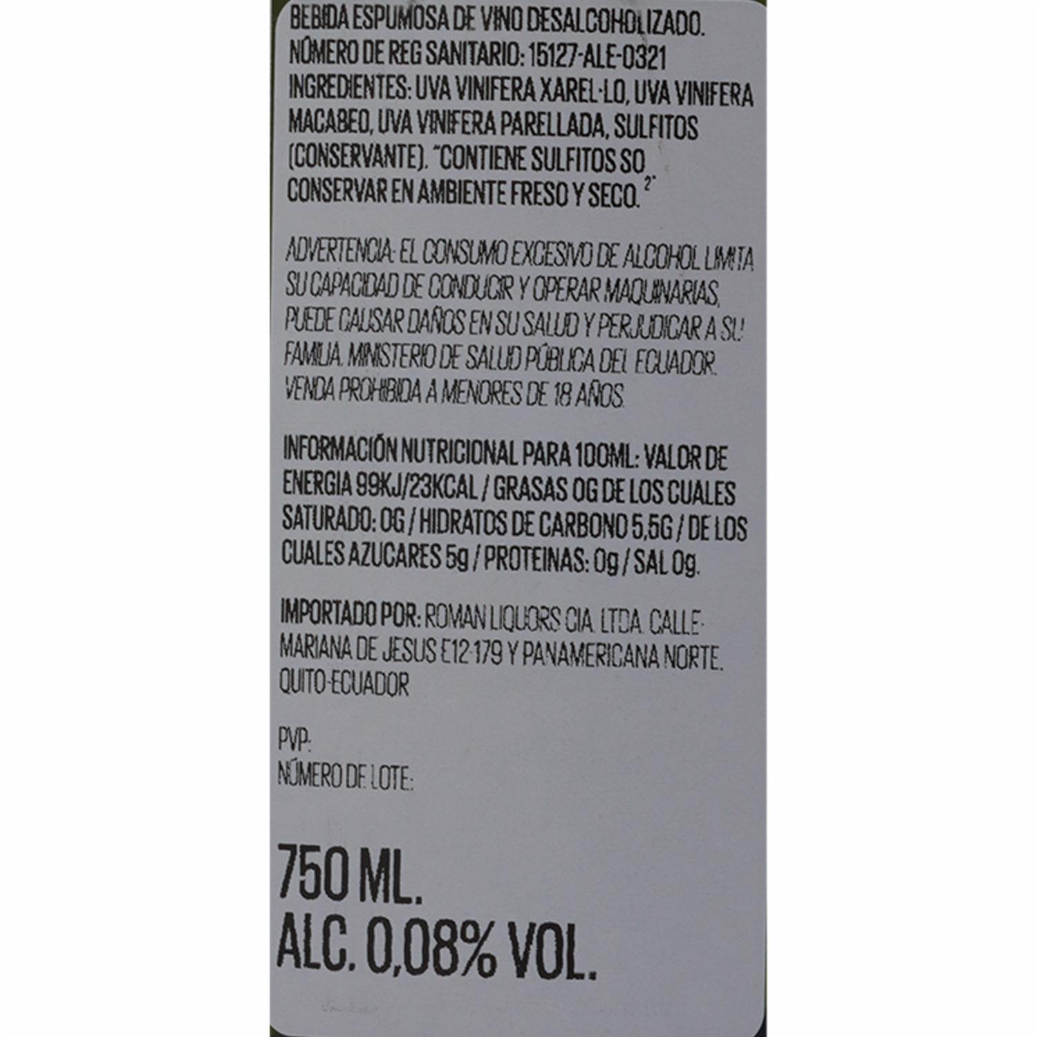 Vino Espumante Sin Alcohol Cava VALLFORMOSA 750 ML