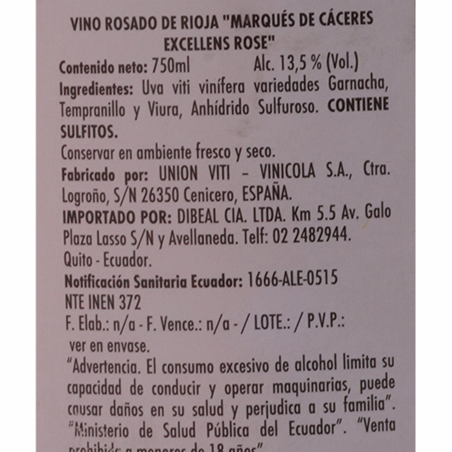 Vino Rosado Excellens Rose MARQUÉS DE CÁCERES 750 ml – MARQUÉS DE CACERES. Disponible en nuestros locales. Precio y stock pueden variar según la tienda.