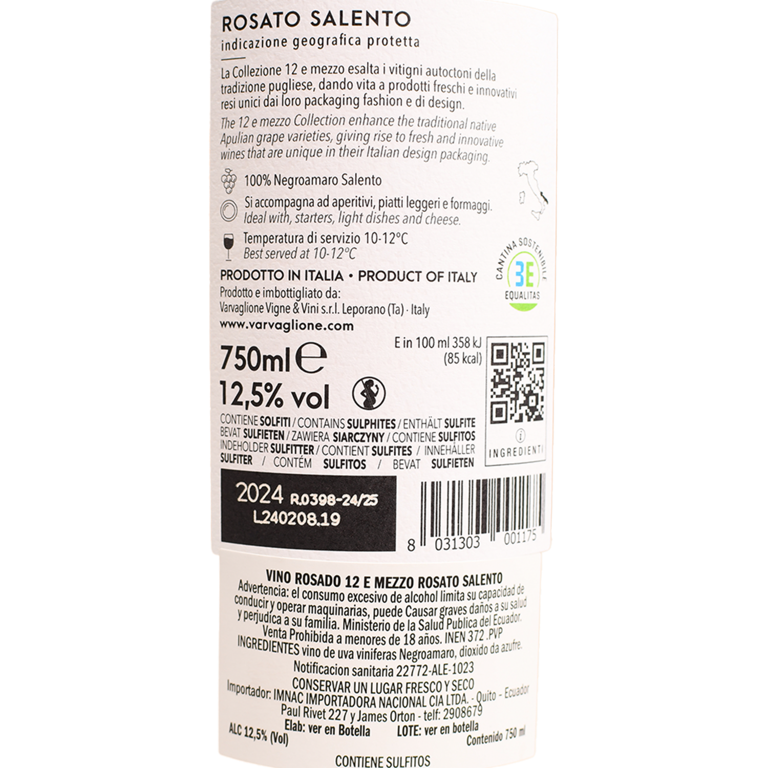 Vino Rosado Rosato Salento 12 E Mezzo VARVAGLIONE 750 Ml