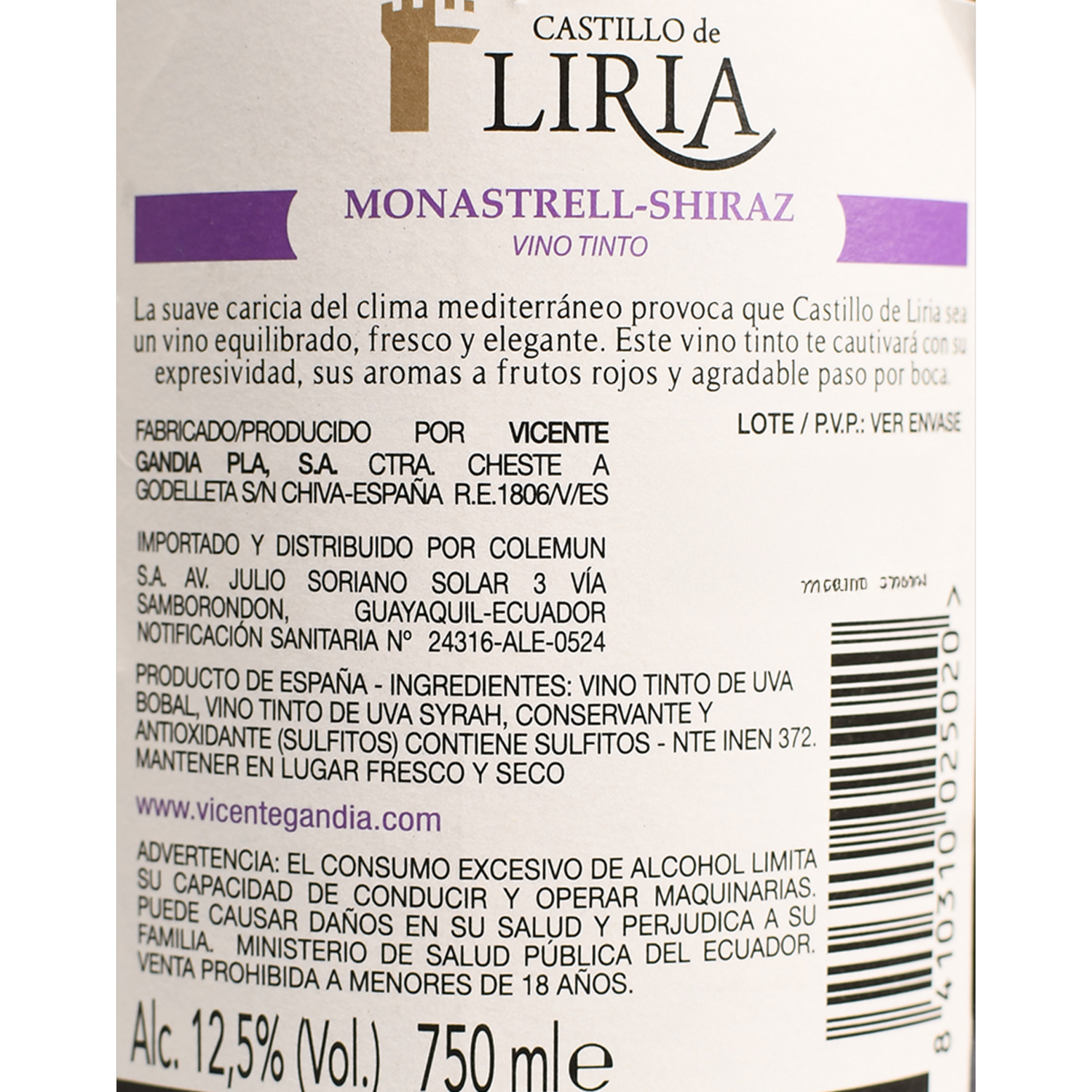 Vino Shiraz CASTILLO DE LIRIA 750 Ml