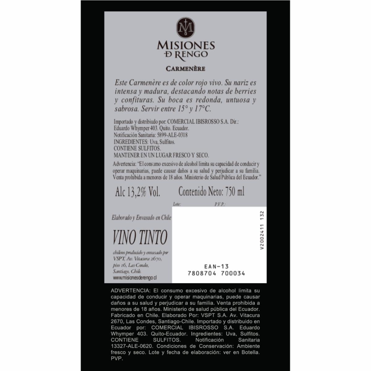 Vino Tinto Carmenere MISIONES D RENGO 750 Ml – MISIONES D RENGO. Disponible en nuestros locales. Precio y stock pueden variar según la tienda.