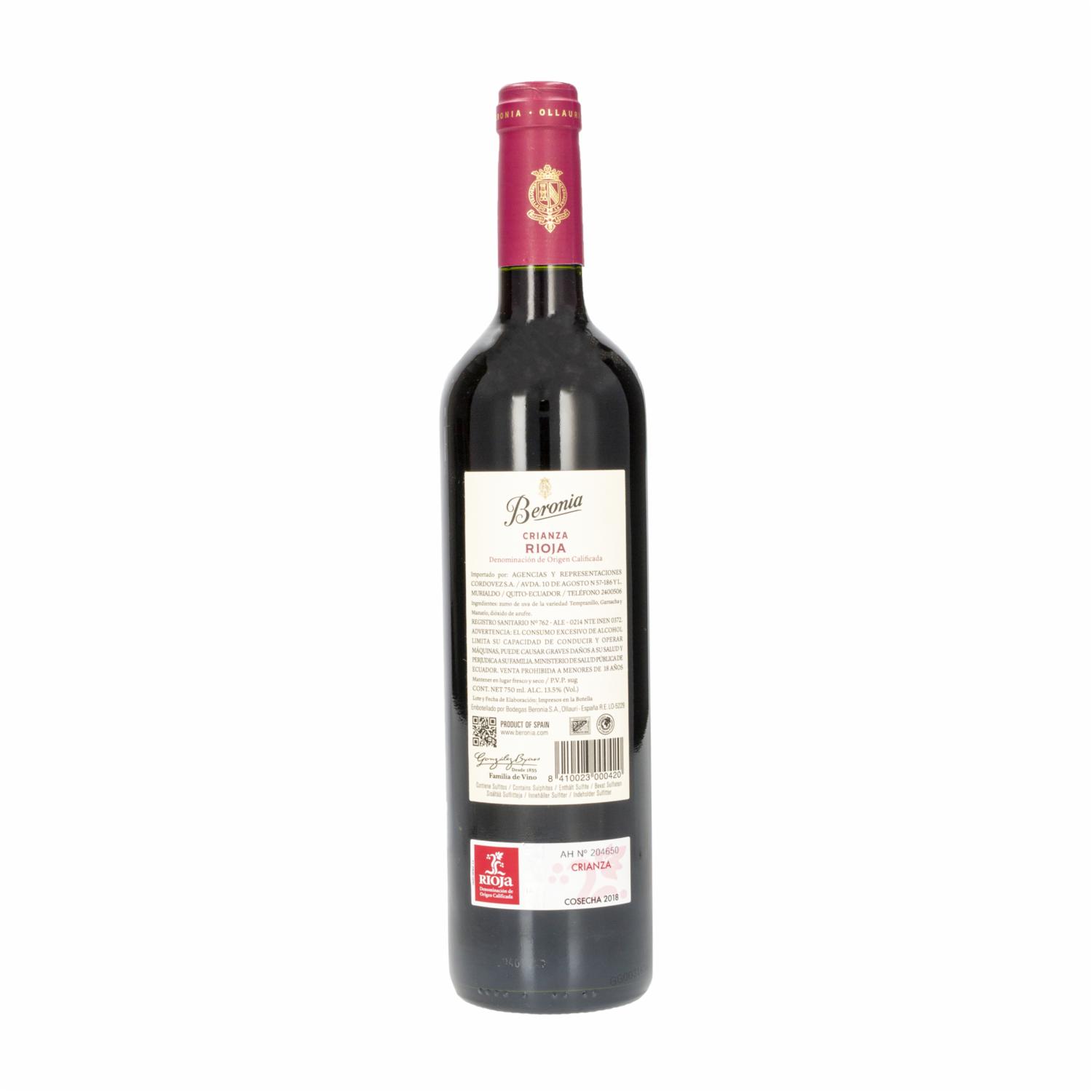 Vino Tinto Crianza BERONIA 750 Ml