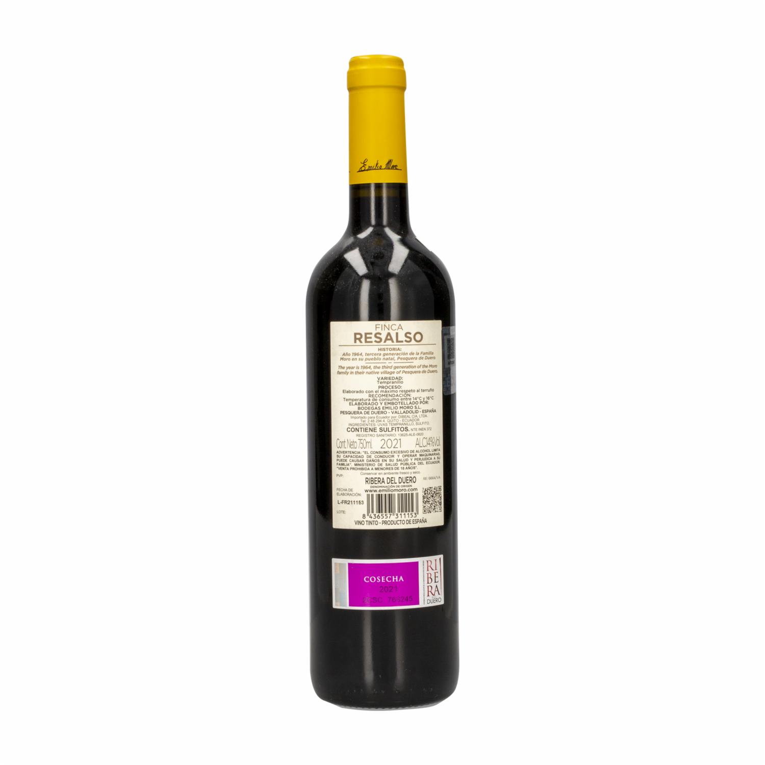 - Finca Resalso Es Un vino Tinto Con Denominación De Origen Ribera Del Duero, 100% Tempranillo. Es Un Vino Tinto Fino De Color Rojo Cereza Picota Con Ribetes Morados. En Nariz Es Franco, Intenso Y Muy Expresivo Destacando Los Aromas Primarios Del Tempranillo Como La Mora Y La Grosella