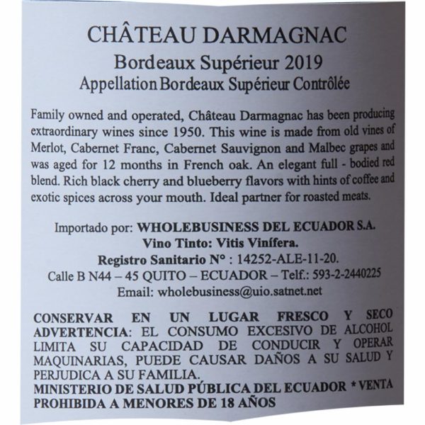 Vino Tinto Frances CHÂTEAU D`ARMAGNAC 750 Ml