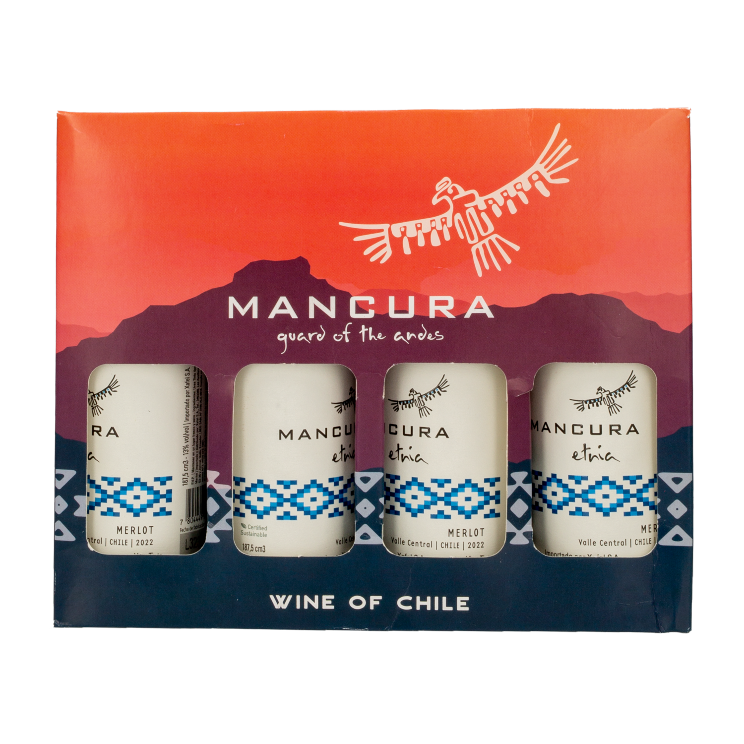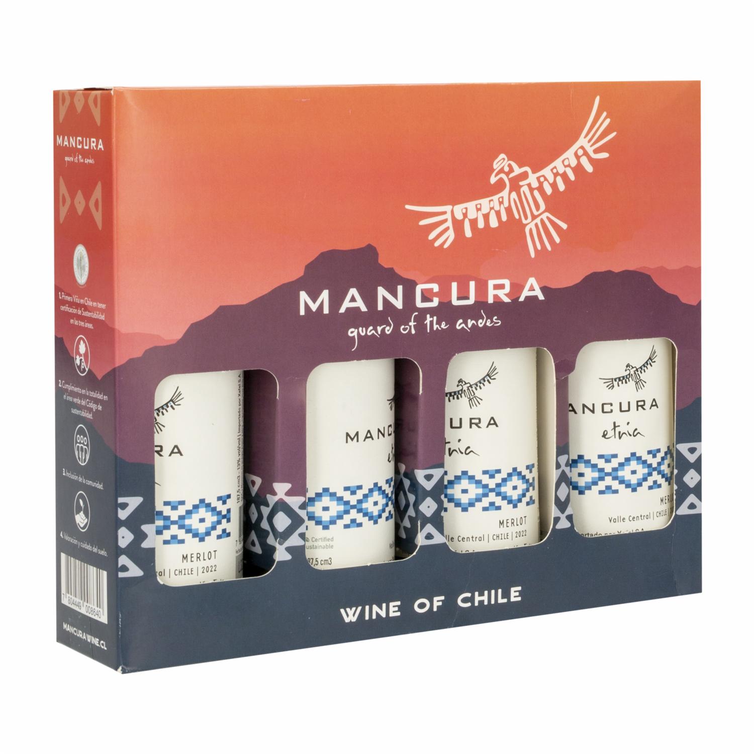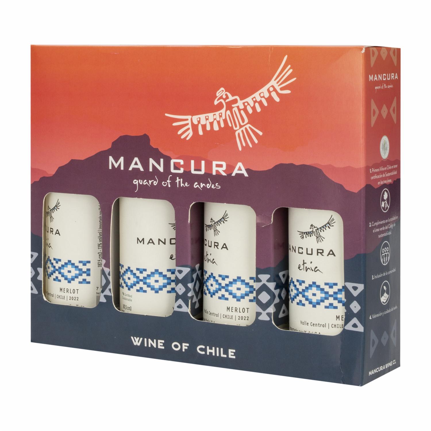 Vino Tinto Merlot MANCURA Pack 4 X 187 Ml – Mancura. Disponible en nuestros locales. Precio y stock pueden variar según la tienda.