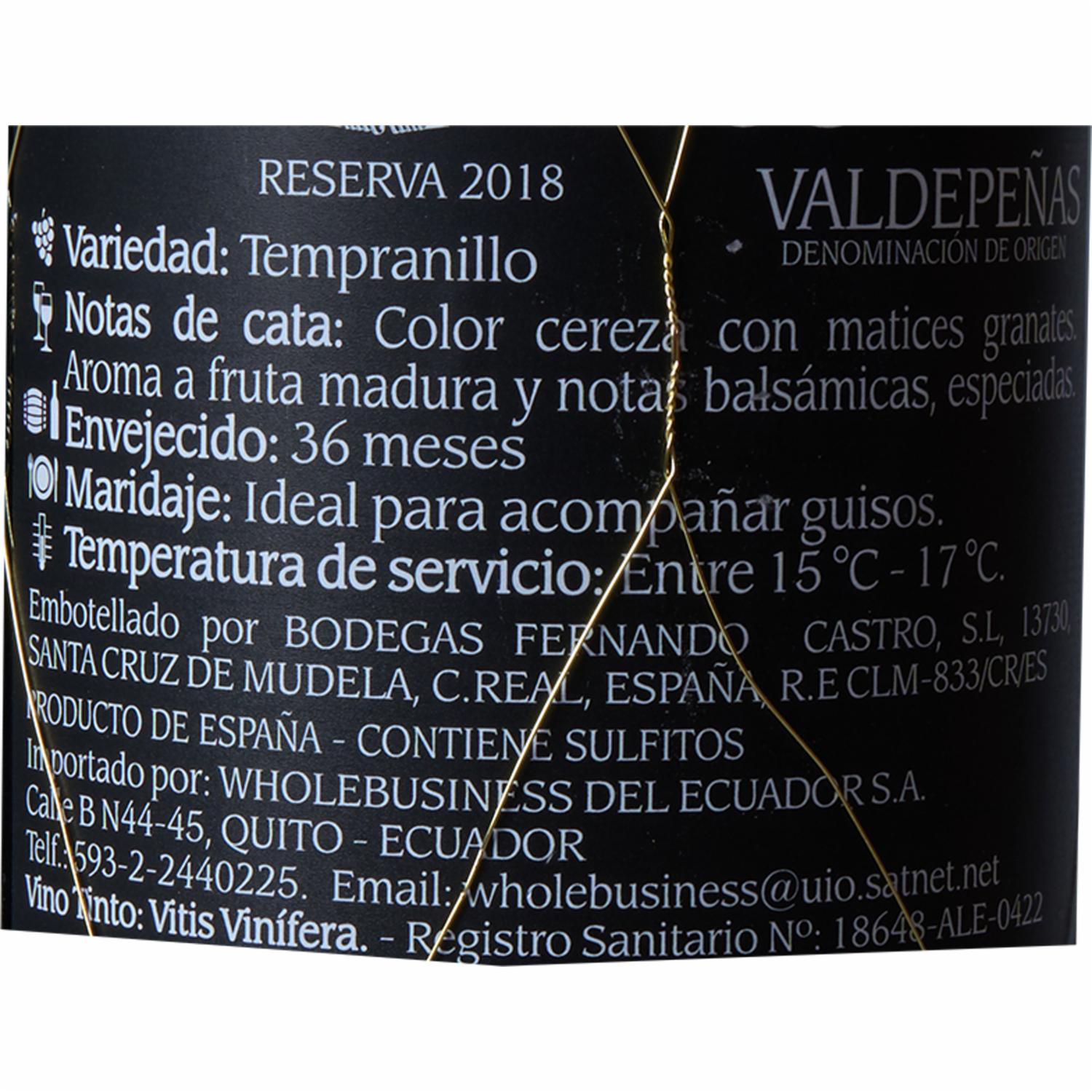 Vino Tinto Reserva 2018 CHATEAU 750 Ml