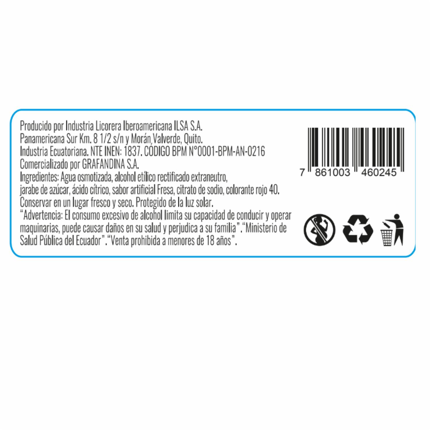 - Licor con caracteristicas sensoriales a strawberry, ligeramente dulce.