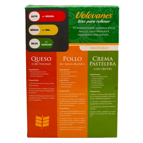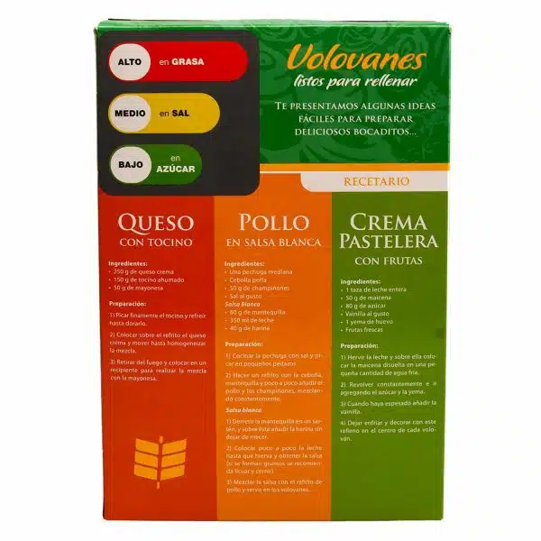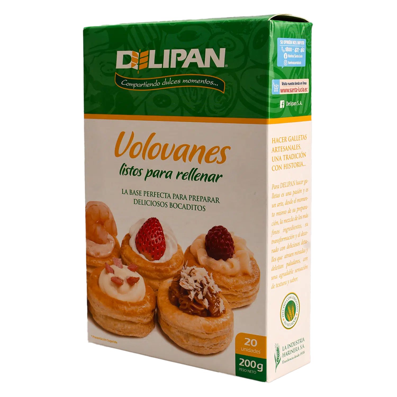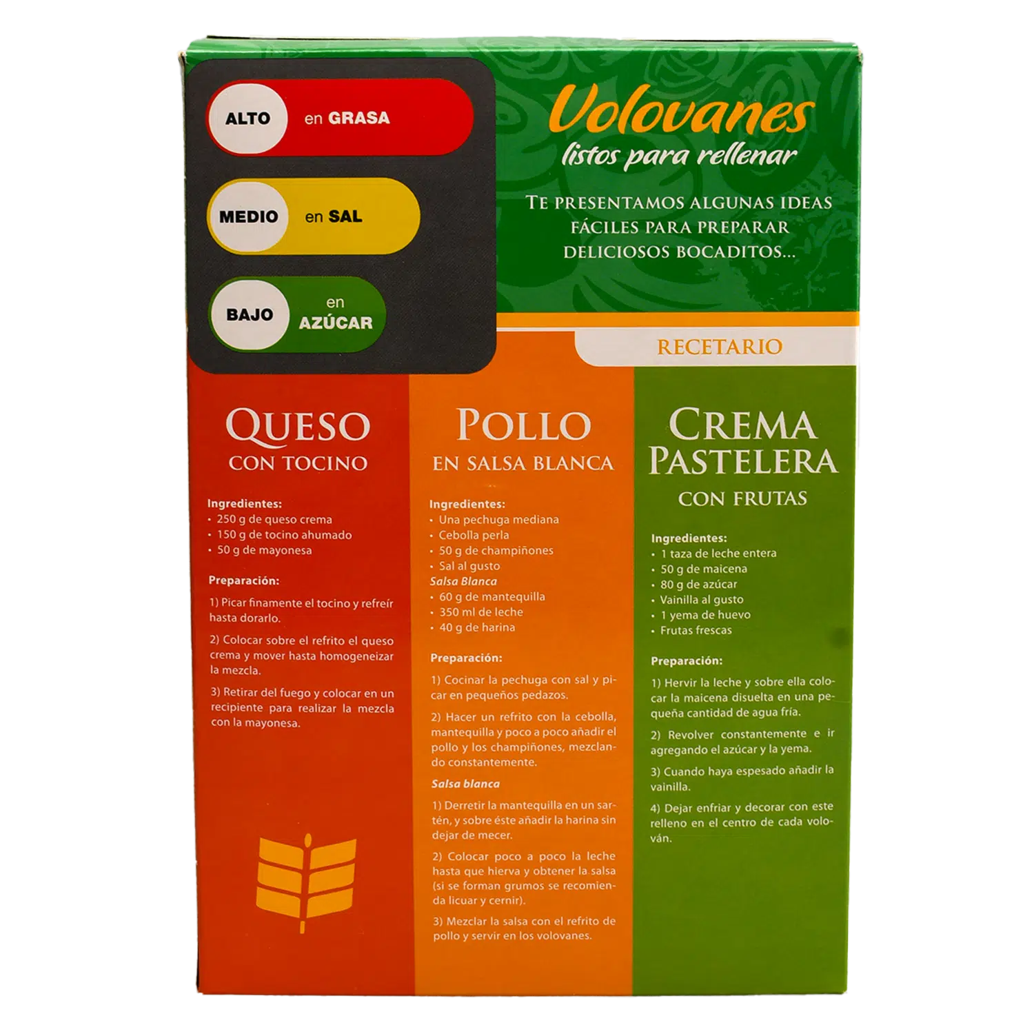 • Volovanes Para Rellenar de Delipan son productos de panadería que tienen las siguientes propiedades principales: 1. Forma: tienen una forma de volován, es decir, un pequeño recipiente con bordes altos que se utiliza para rellenar con diferentes ingredientes. 2. Textura: la textura es crujiente y ligera, lo que los hace perfectos para rellenar con diferentes tipos de preparaciones