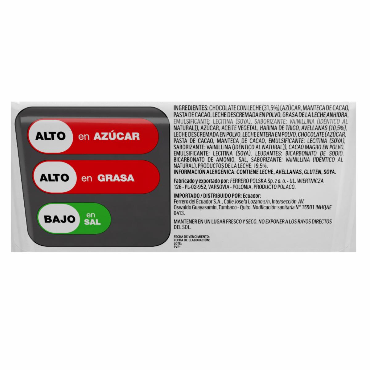 - Wafer recubierto de chocolate con leche con relleno cremoso a base de leche y avellanas