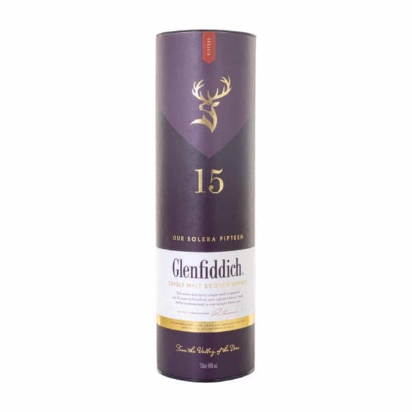 Glenfiddich 15 años tiene un intrigante aroma a caramelo de vainilla, con aromas de frutas y dulce miel de brezo. De cuerpo intenso con un sedoso y suave sabor de roble con notas de mazapán, canela y jengibre con un regusto dulce