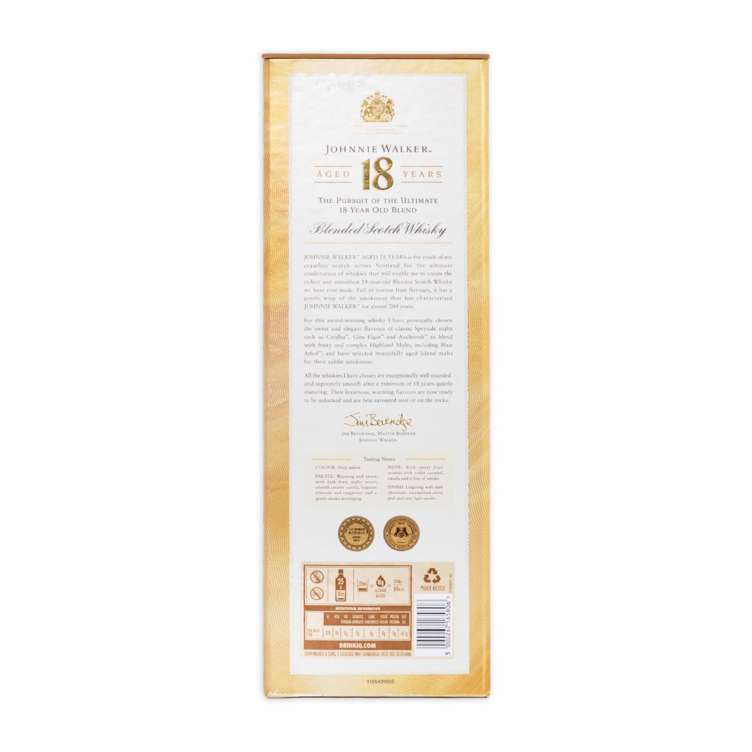 Johnnie Walker 18Y es una bebida de alta calidad, elaborada con ingredientes seleccionados. Versatil para distintas ocasiones, servir fria o a gusto