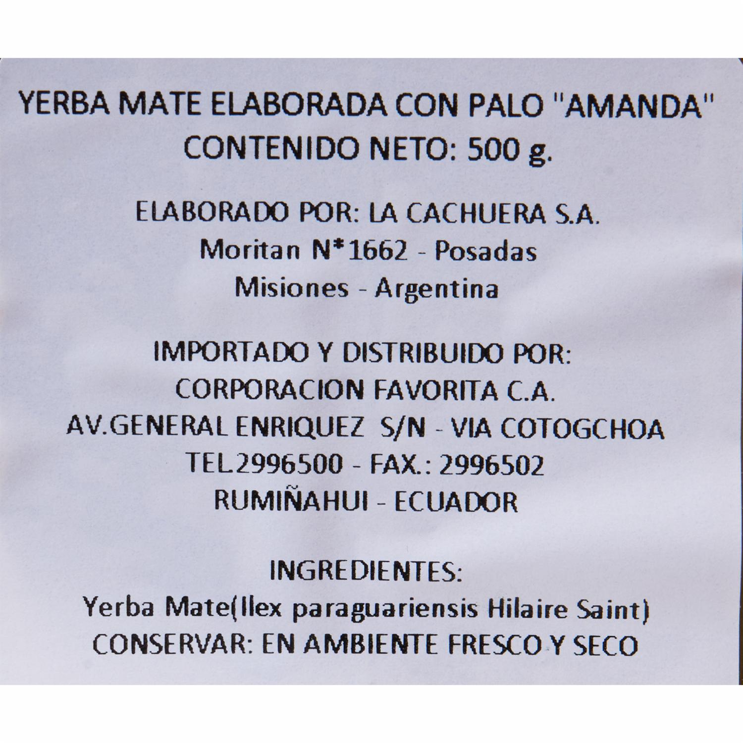 Yerba Mate Con Palo + Lata AMANDA 500 G – AMANDA. Disponible en nuestros locales. Precio y stock pueden variar según la tienda.