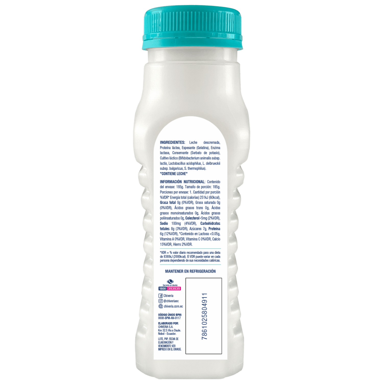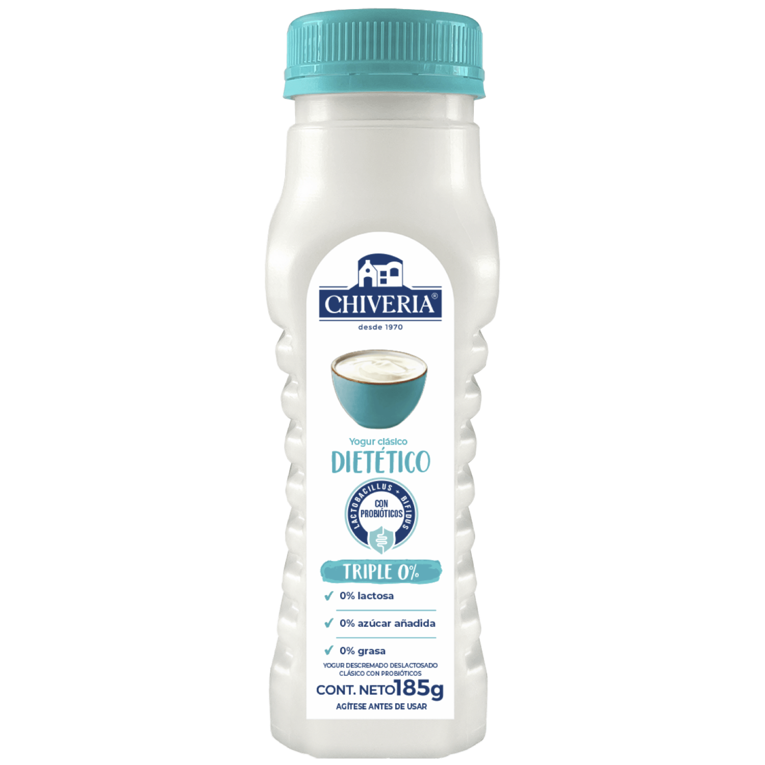 - Yogur dietético CHIVERIA sin azúcar, libre de colorantes y saborizantes artificiales. Elaborado con yogurt descremado clásico con probióticos AB. Este producto contiene edulcorante no calórico