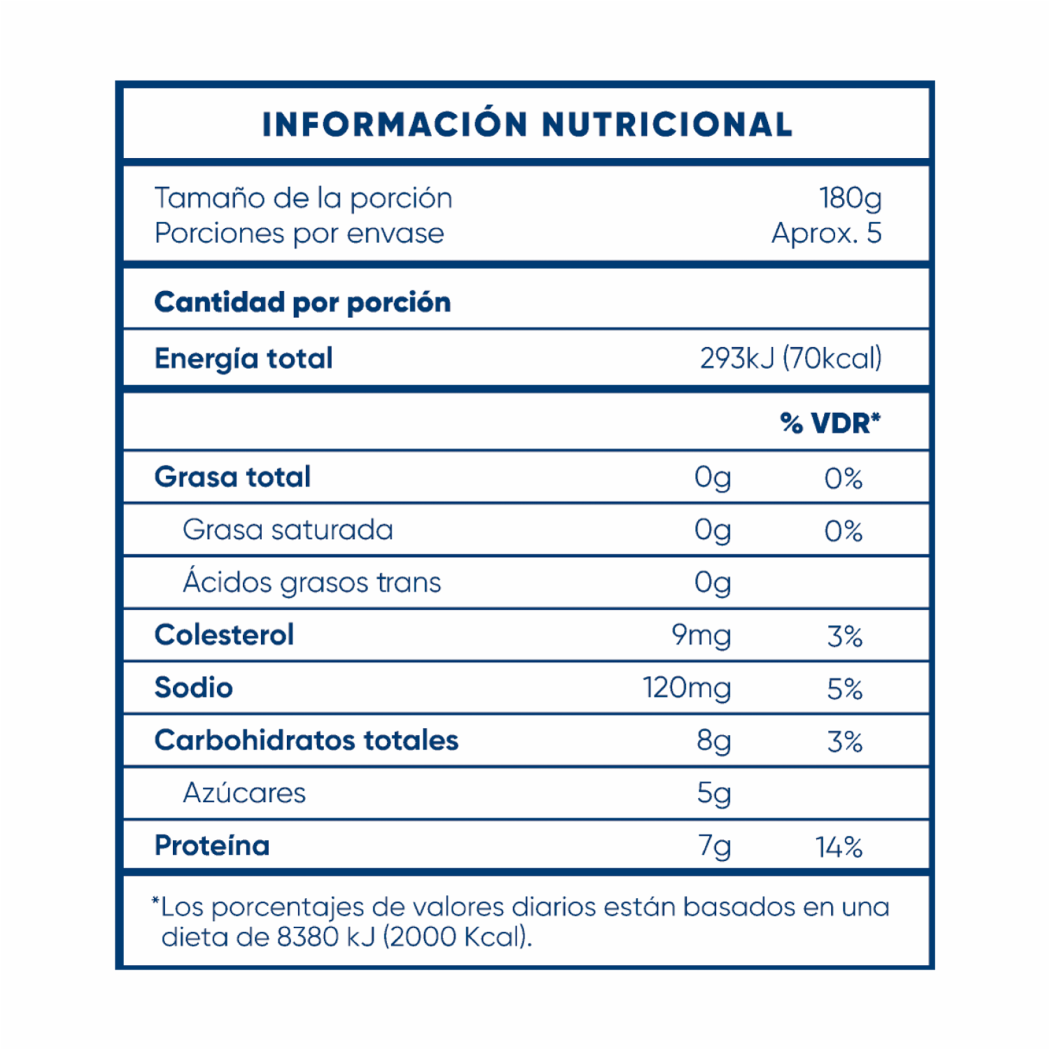 Yogur CHIVERIA sin azúcar, 0% grasa, libre de colorantes y saborizantes artificiales. Elaborado con yogurt descremado. Este producto contiene edulcorante no calórico