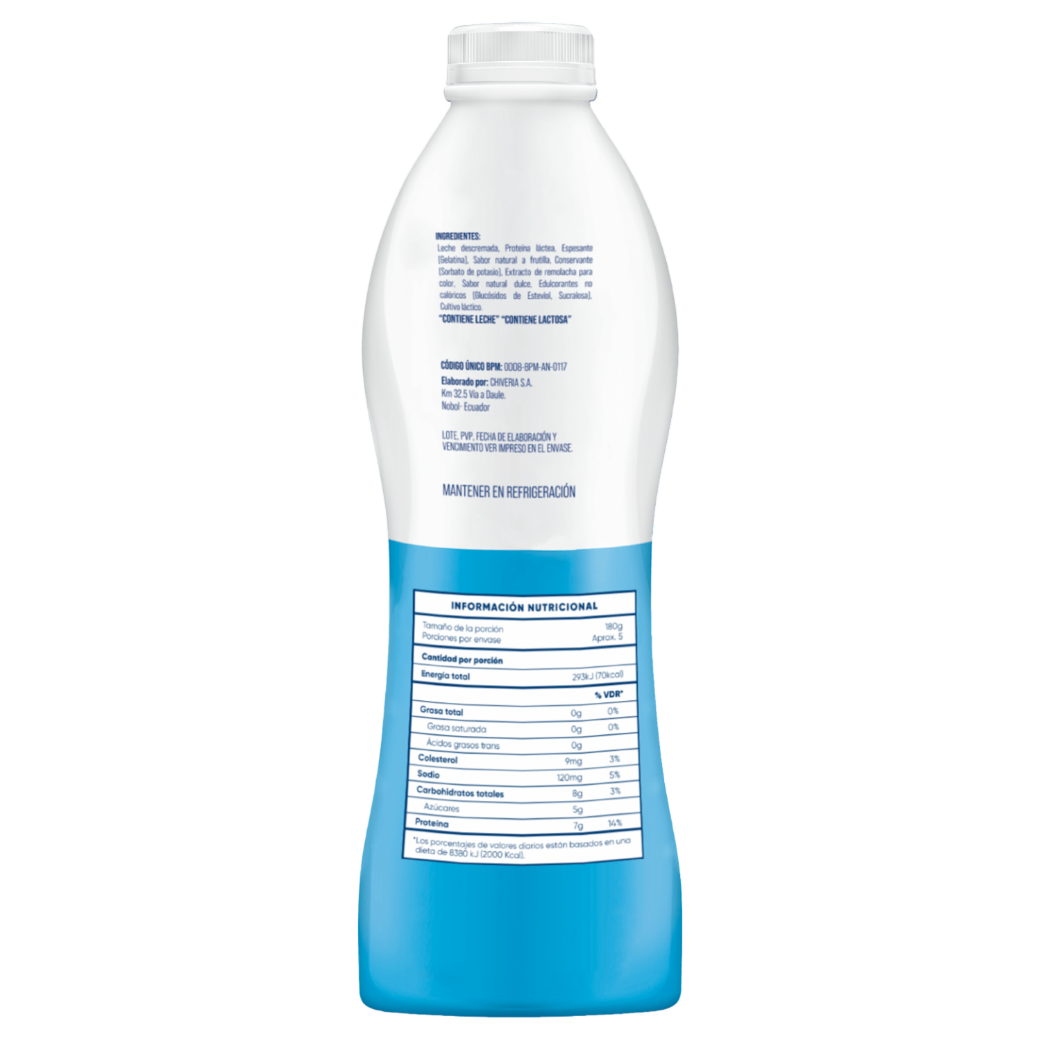 Yogur Descremado Sabor A Frutilla 0% Grasa CHIVERIA 950 G – CHIVERIA. Disponible en nuestros locales. Precio y stock pueden variar según la tienda.