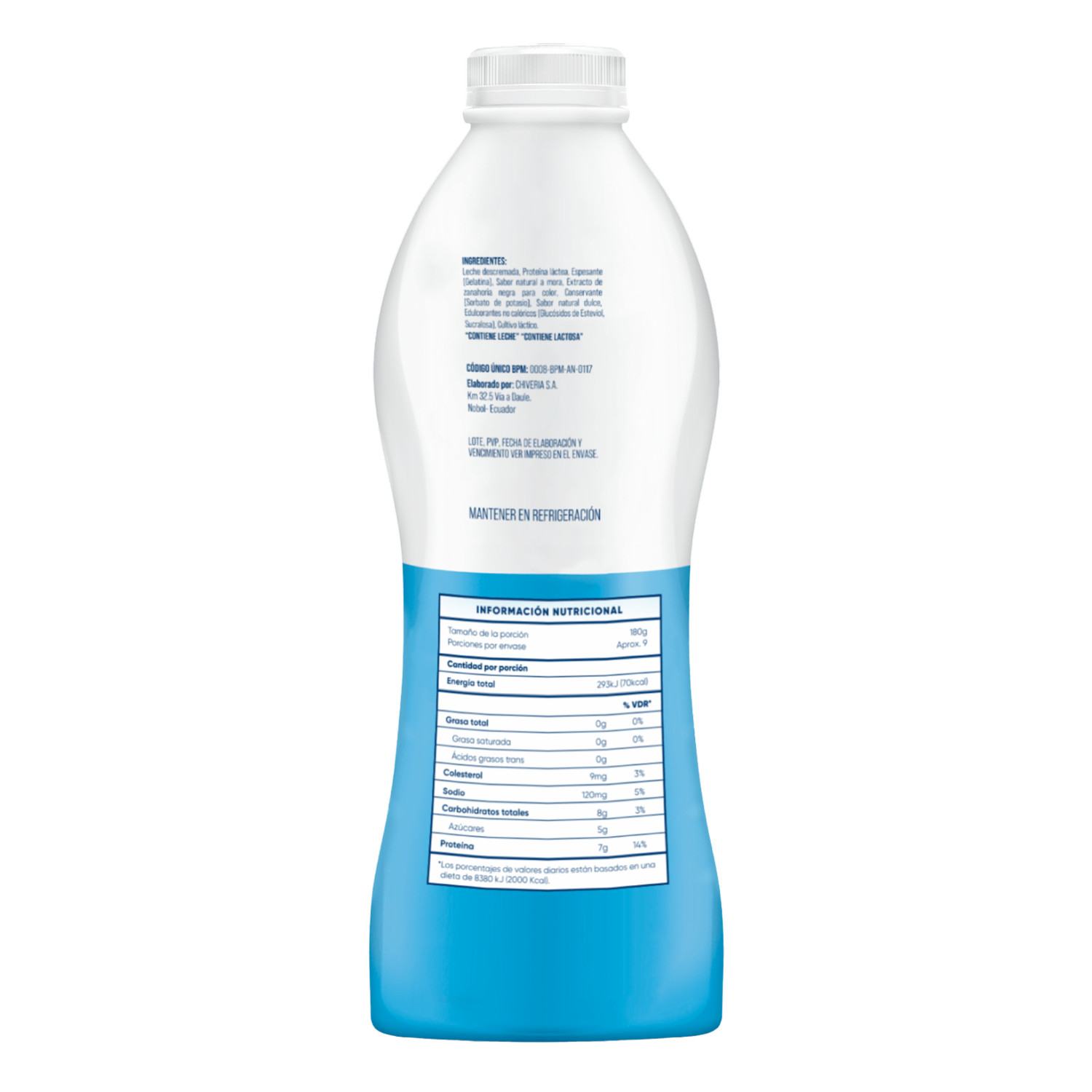 - Yogur CHIVERIA sin azúcar, 0% grasa, libre de colorantes y saborizantes artificiales. Elaborado con yogurt descremado. Este producto contiene edulcorante no calórico