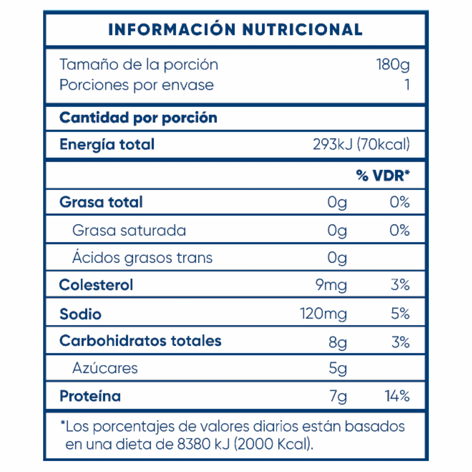 Yogur CHIVERIA sin azúcar, 0% grasa, libre de colorantes y saborizantes artificiales. Elaborado con yogurt descremado. Este producto contiene edulcorante no calórico
