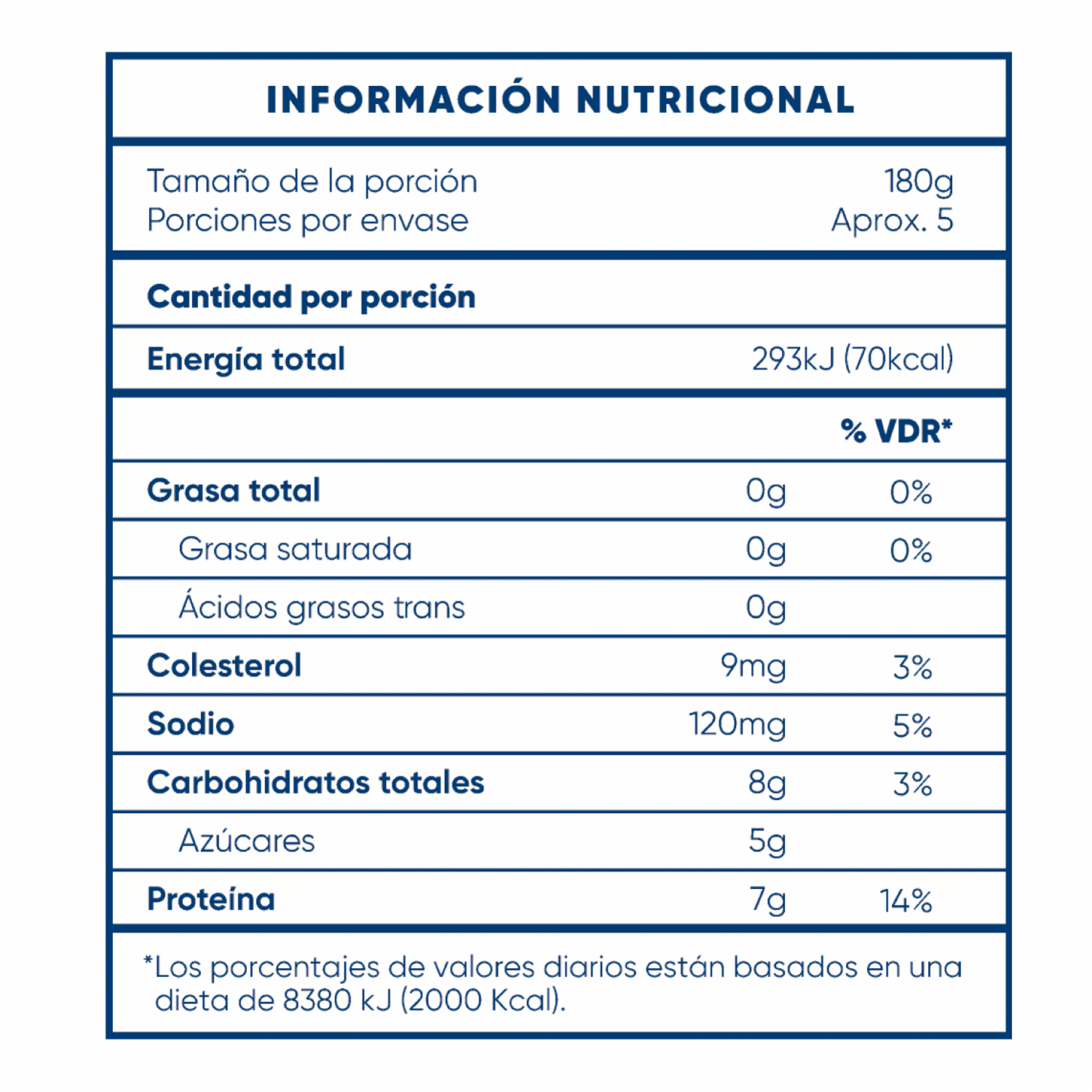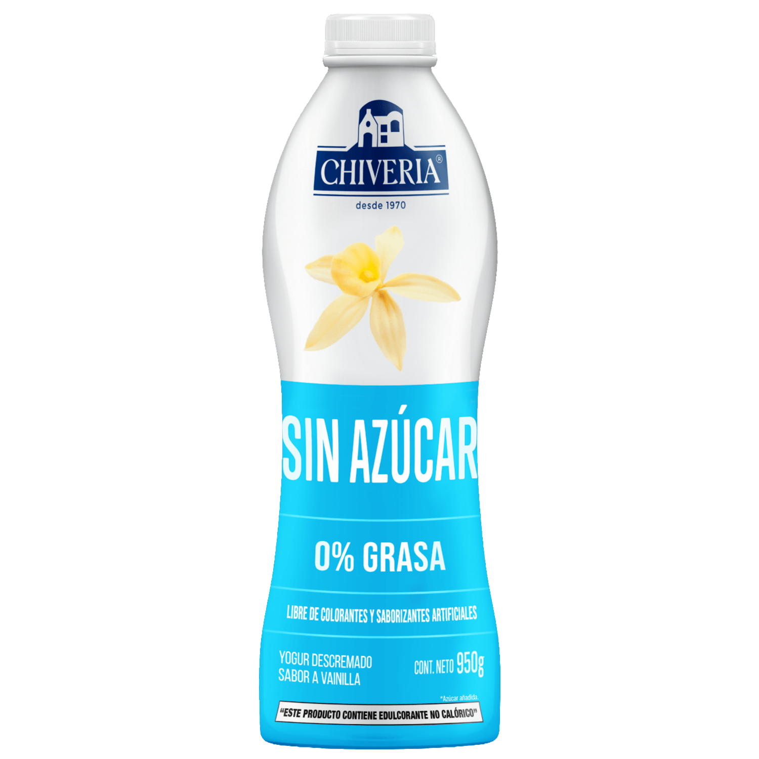 Yogur CHIVERIA sin azúcar, 0% grasa, libre de colorantes y saborizantes artificiales. Elaborado con yogurt descremado. Este producto contiene edulcorante no calórico