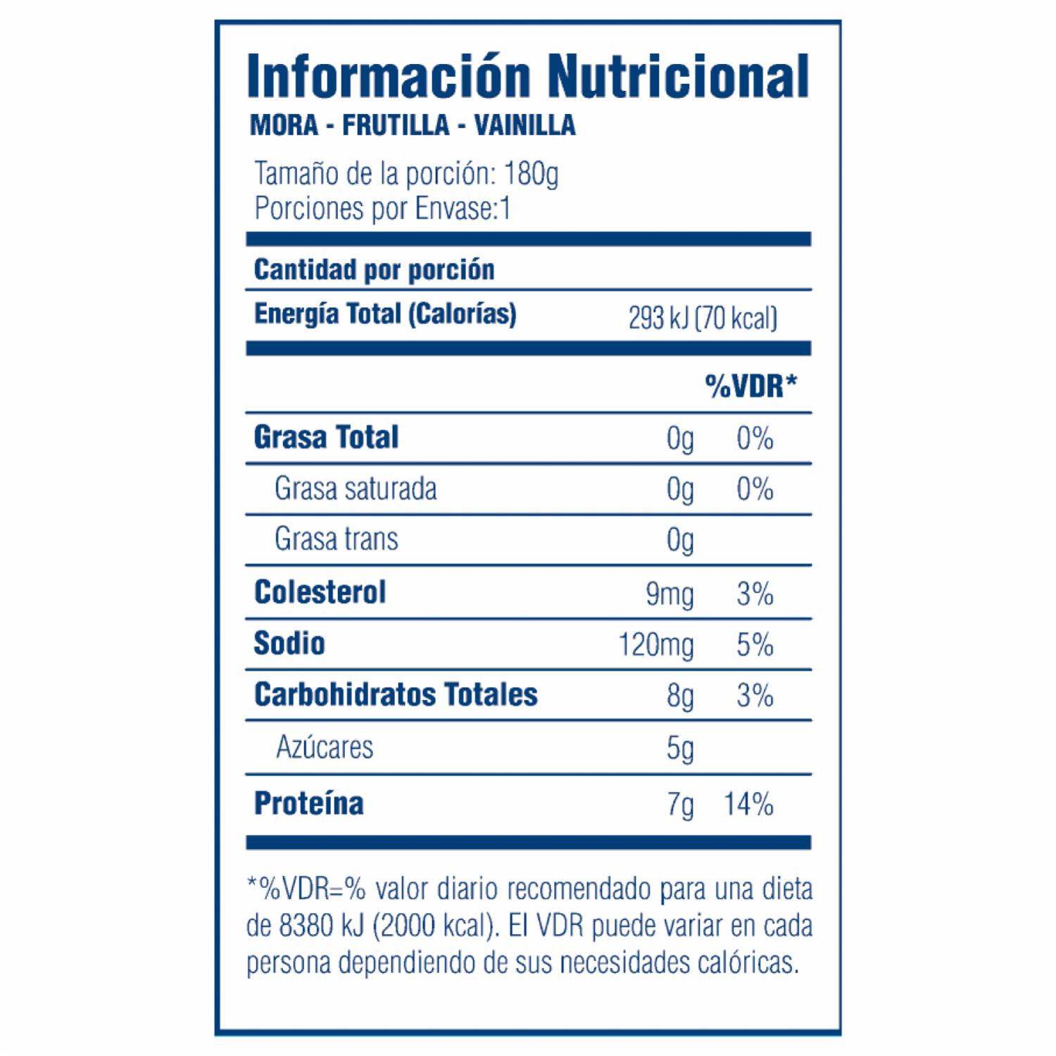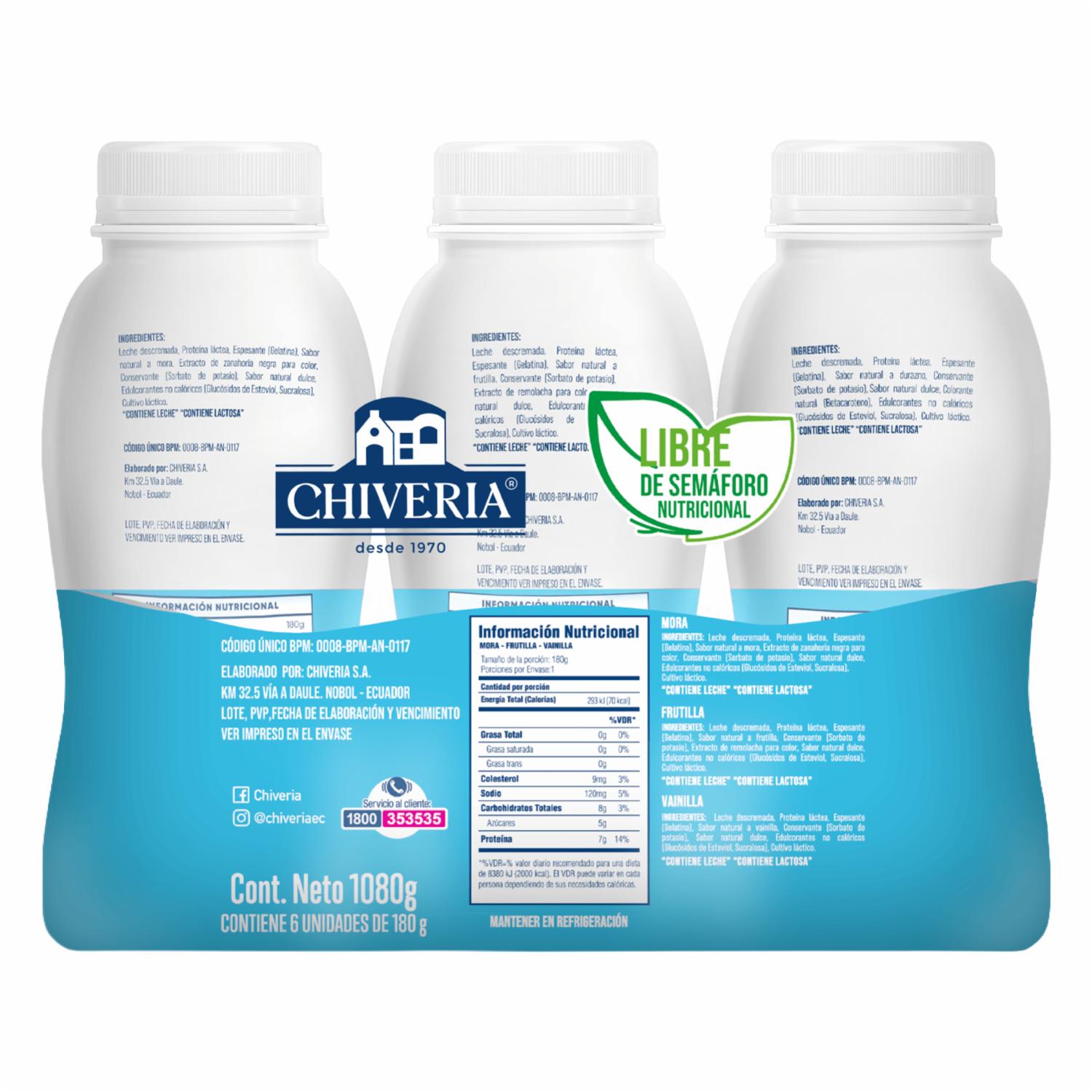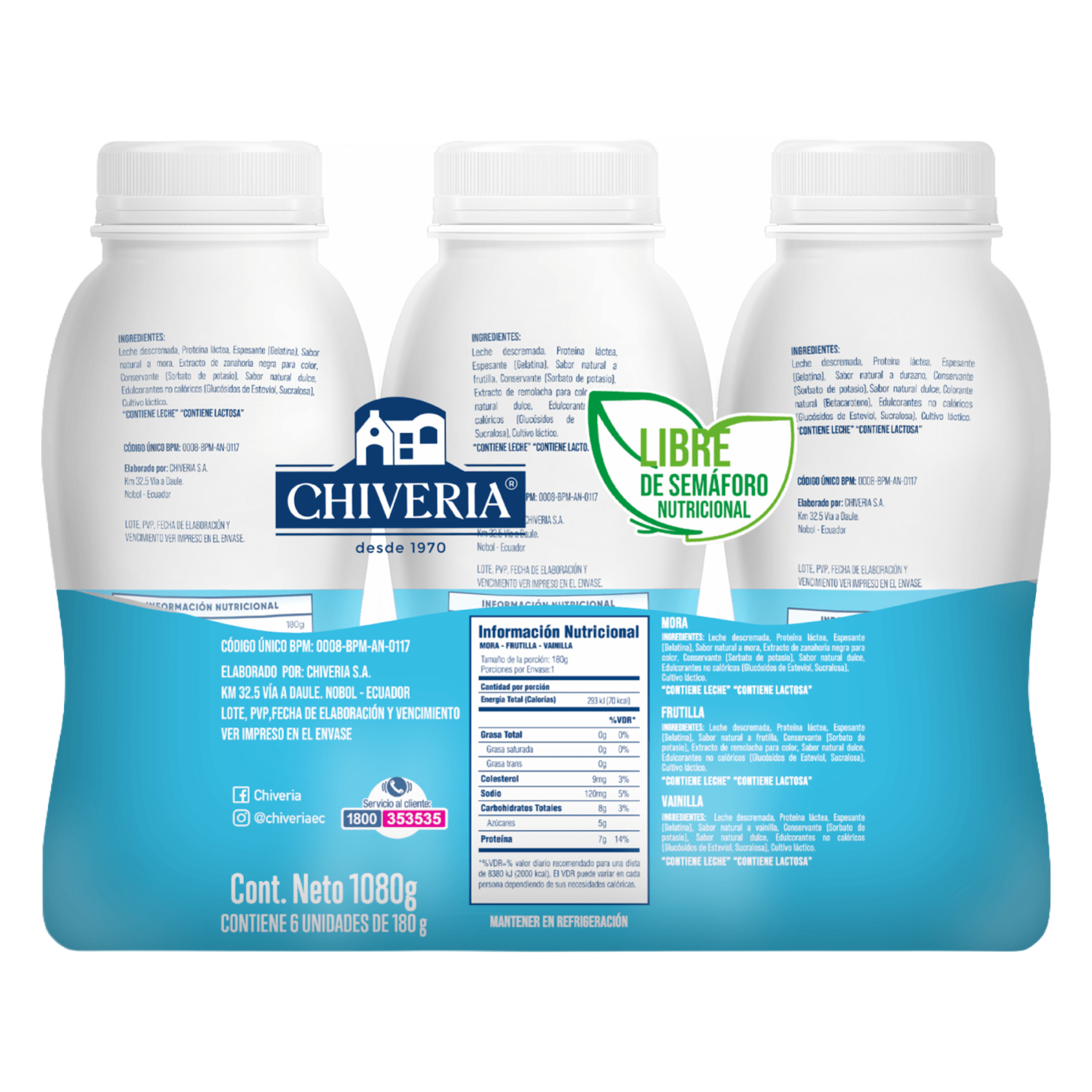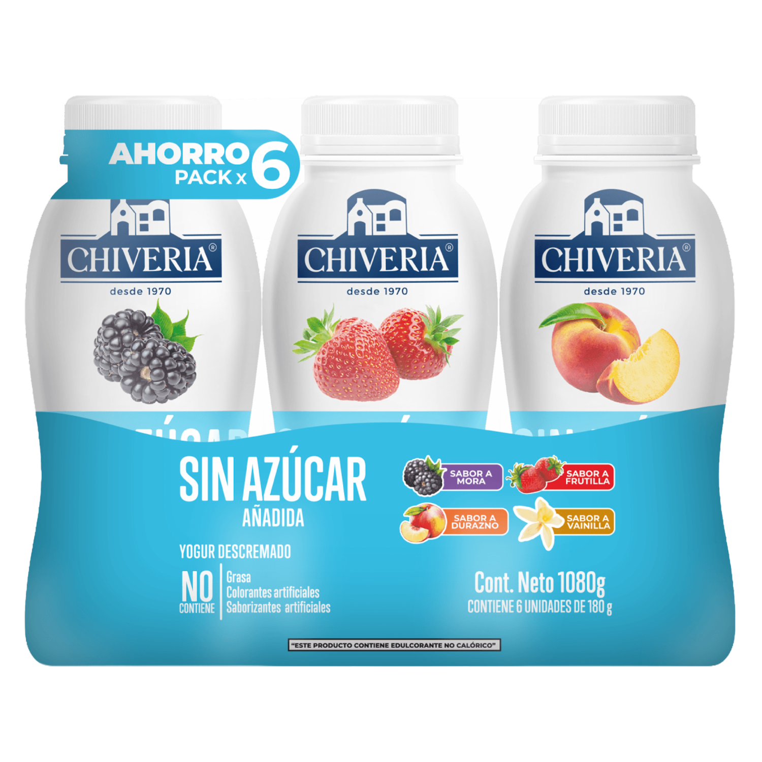 Yogur Descremado Surtido Mora Frutilla Durazno Vainilla 0% Grasa CHIVERIA 6 X 180 G