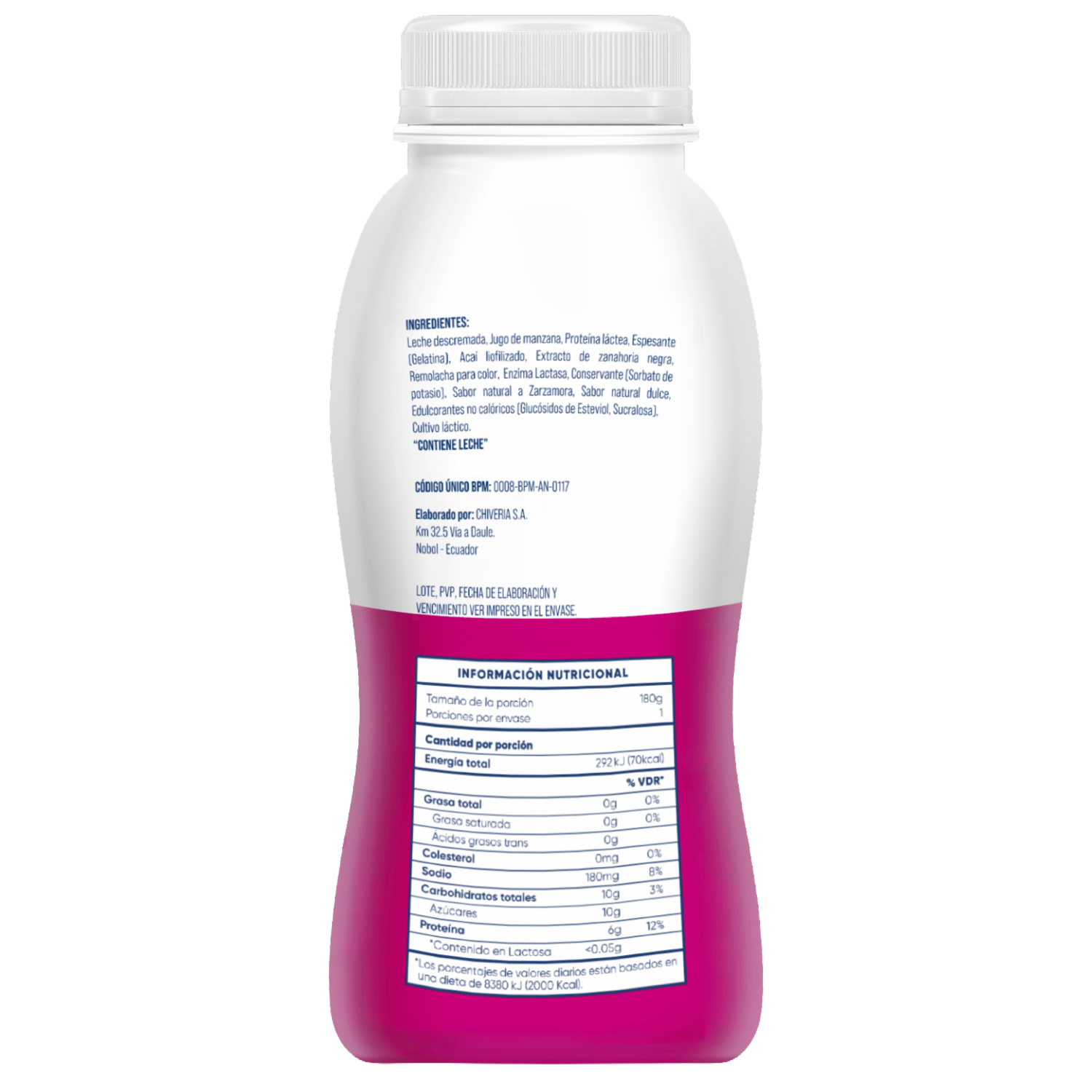 Yogur Deslactosado Descremado Sabor A Acai CHIVERIA 180 G