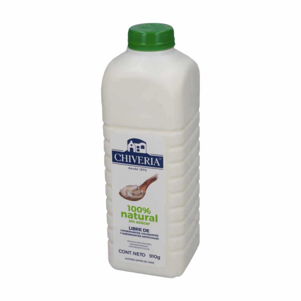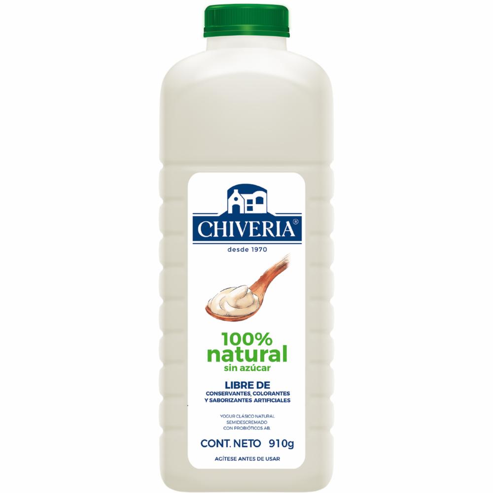 Yogur 100% natural CHIVERIA, sin azúcar, libre de conservantes, colorantes y saborizantes artificiales. Elaborado con yogurt clásico natural semidescremado con probióticos AB. Este producto contiene edulcorante no calórico