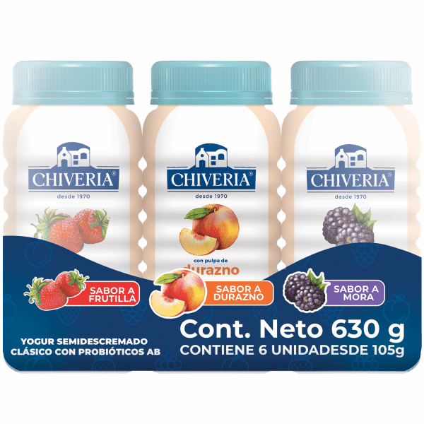 Yogur Semidescremado Surtido Frutilla Durazno Mora CHIVERIA 6 X 105 G