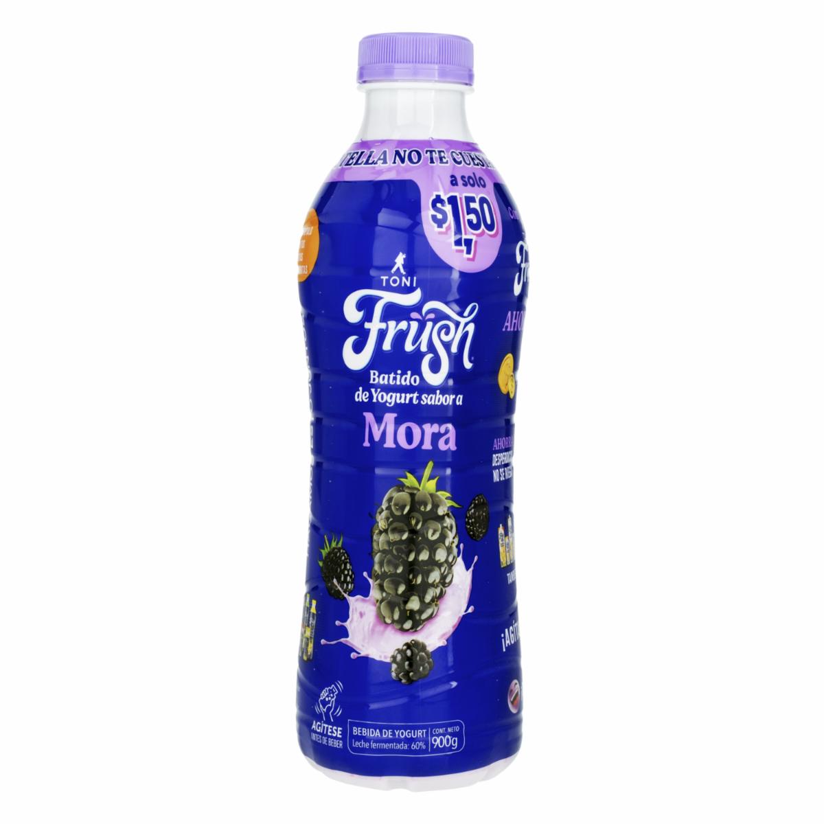 - Disfruta el sabor natural y refrescante del batido de yogur Frush sabor mora de Toni. Ideal para tus momentos de energía y bienestar, combina la cremosidad del yogur con el dulce toque de mora en una presentación práctica y lista para disfrutar