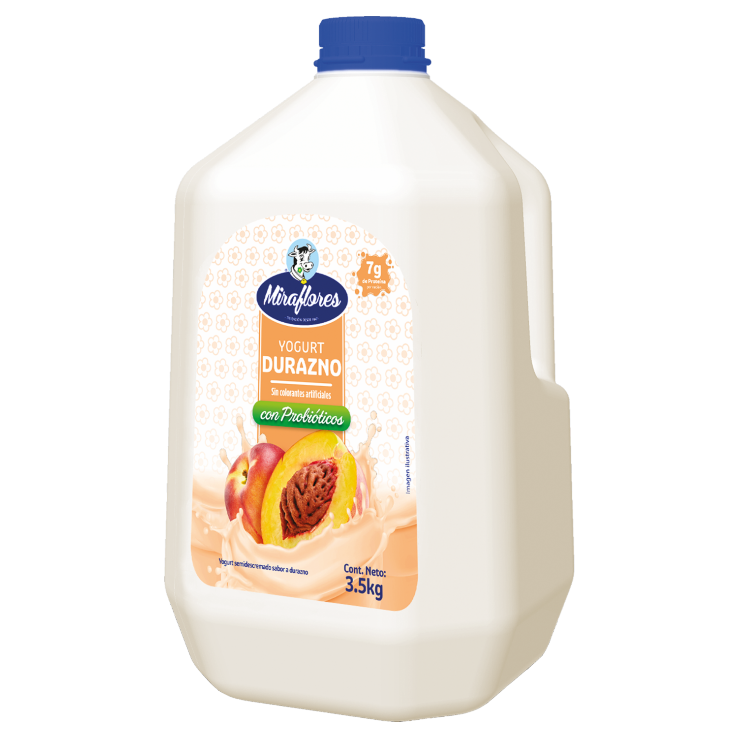 Yogurt Bebible Sabor A Durazno Textura Cremosa MIRAFLORES 3.5 Kg – MIRAFLORES. Disponible en nuestros locales. Precio y stock pueden variar según la tienda.