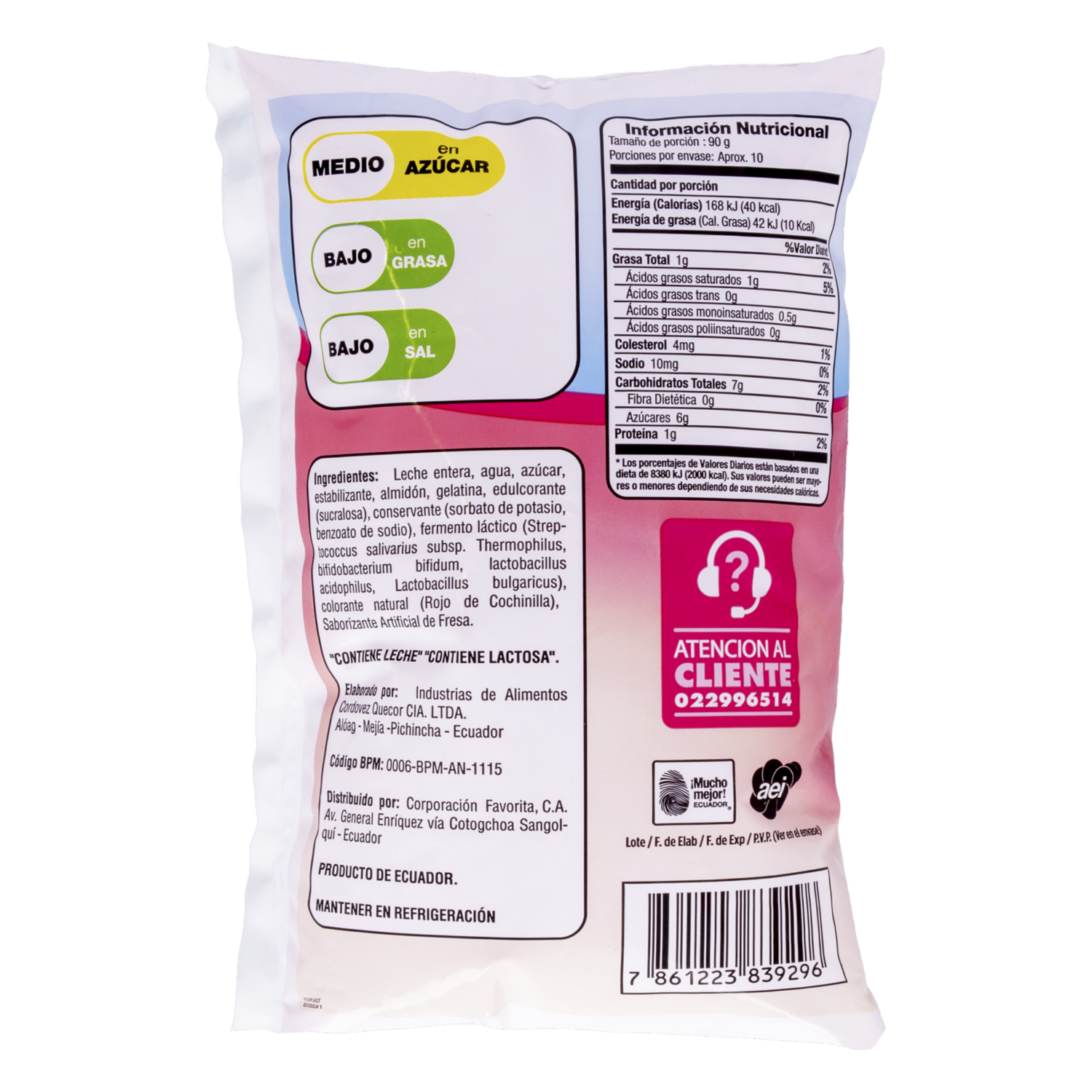 Yogurt bebible sabor a fresa, cremoso y refrescante, elaborado para disfrutarse en cualquier momento del día. Ofrece un equilibrio ideal entre dulzura y suavidad, perfecto para acompañar desayunos, meriendas o como snack práctico y nutritivo