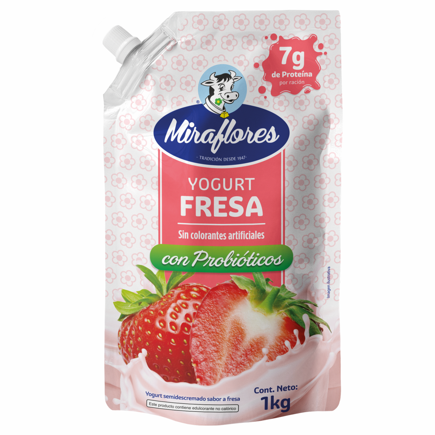 Yogurt Bebible Sabor A Fresa Sin Colorantes Con Probióticos MIRAFLORES Doypack 1 Kg