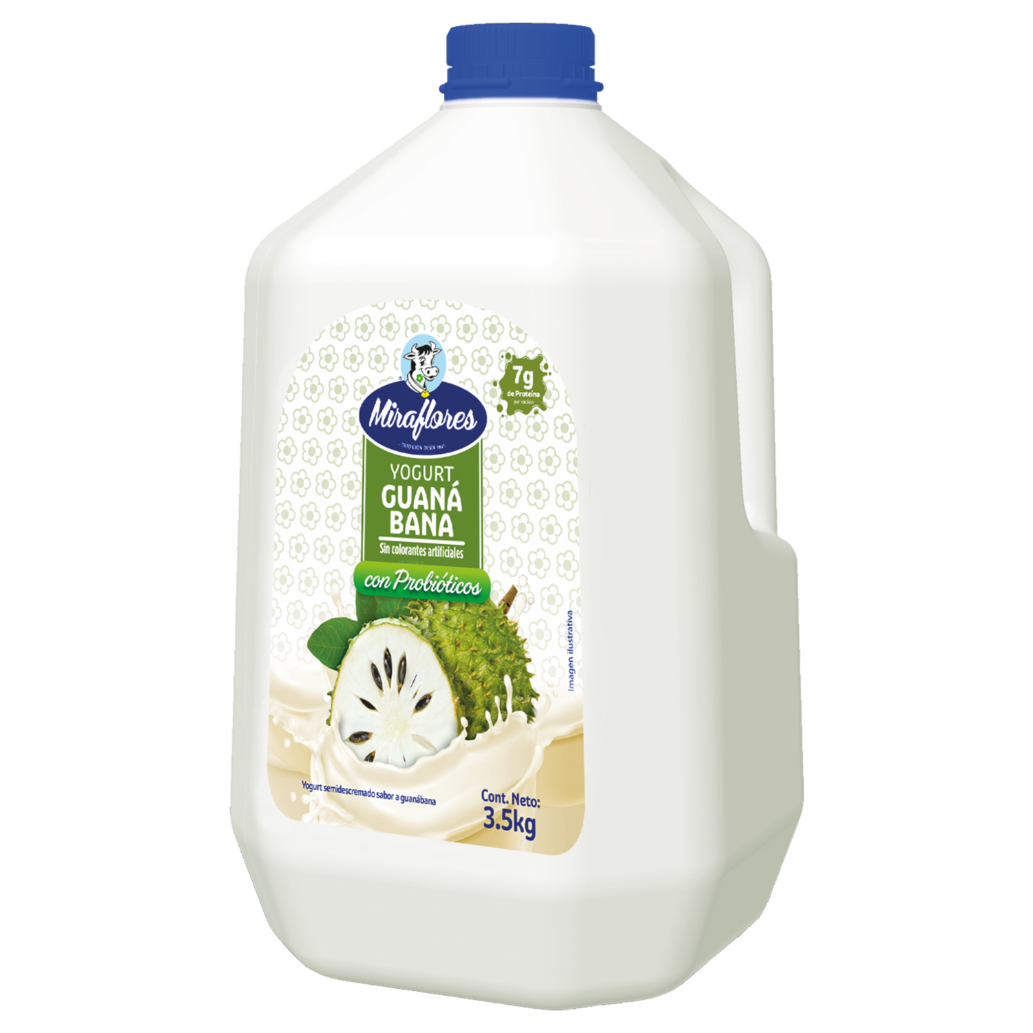 Yogurt Bebible Sabor A Guanábana Textura Cremosa MIRAFLORES 3.5 Kg – MIRAFLORES. Disponible en nuestros locales. Precio y stock pueden variar según la tienda.