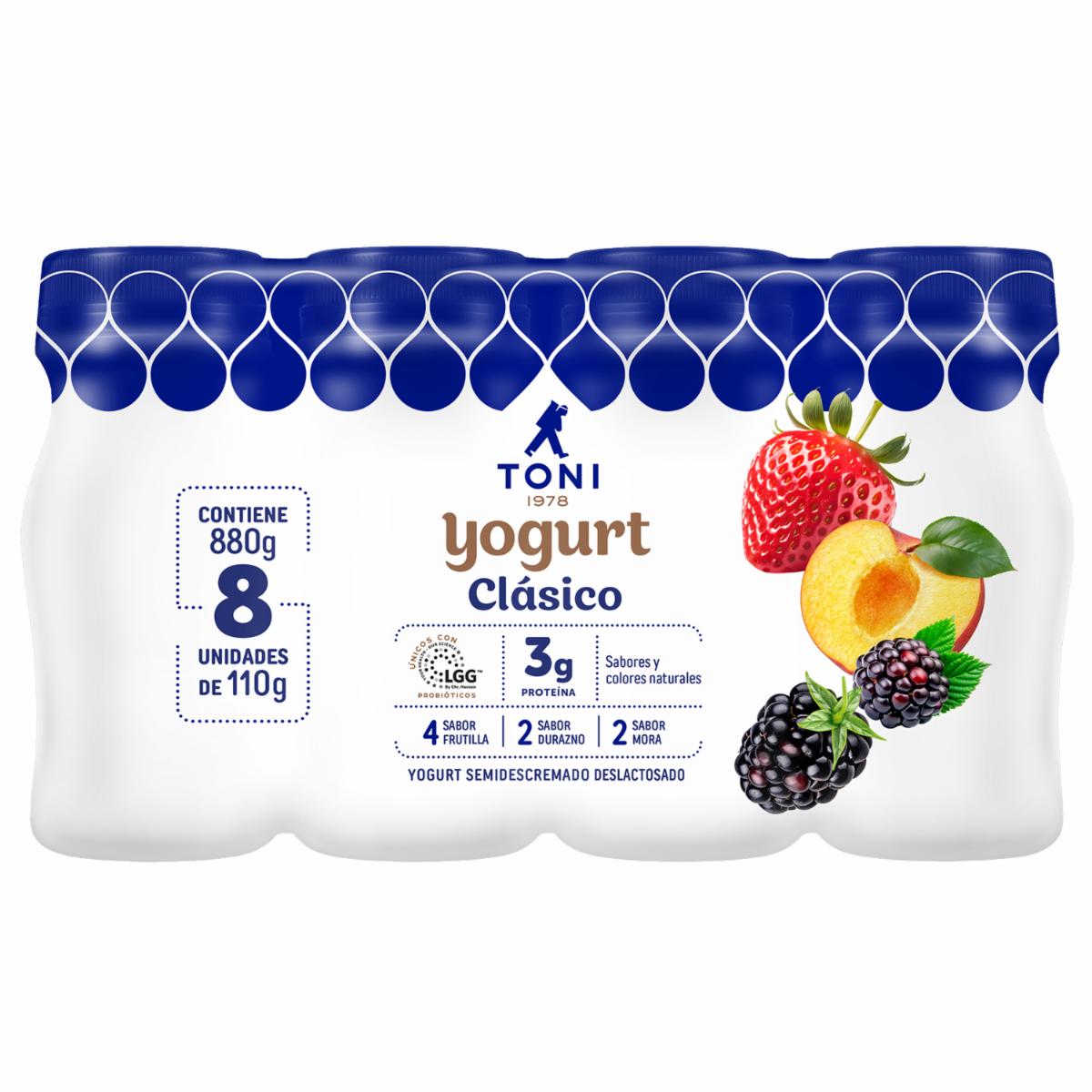 - Disfruta del delicioso sabor y la textura cremosa del Yogurt Clásico Semidescremado TONI con este práctico pack de 8 unidades. Perfecto para el desayuno, meriendas o como un snack saludable, este surtido ofrece una variedad de sabores que complacen todos los paladares
