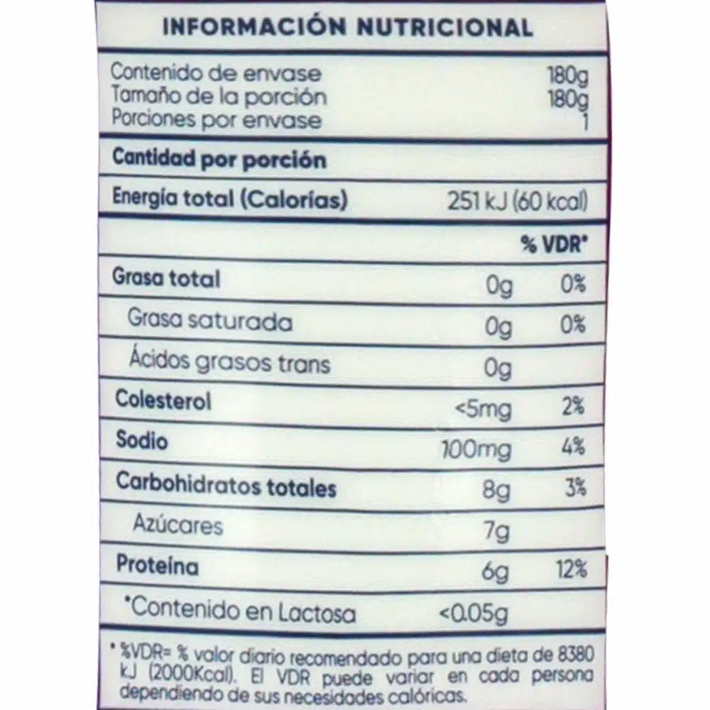 Yogurt deslactosado libre de saborizantes y colorantes artificiales. Sin grasas y sin azúcar
