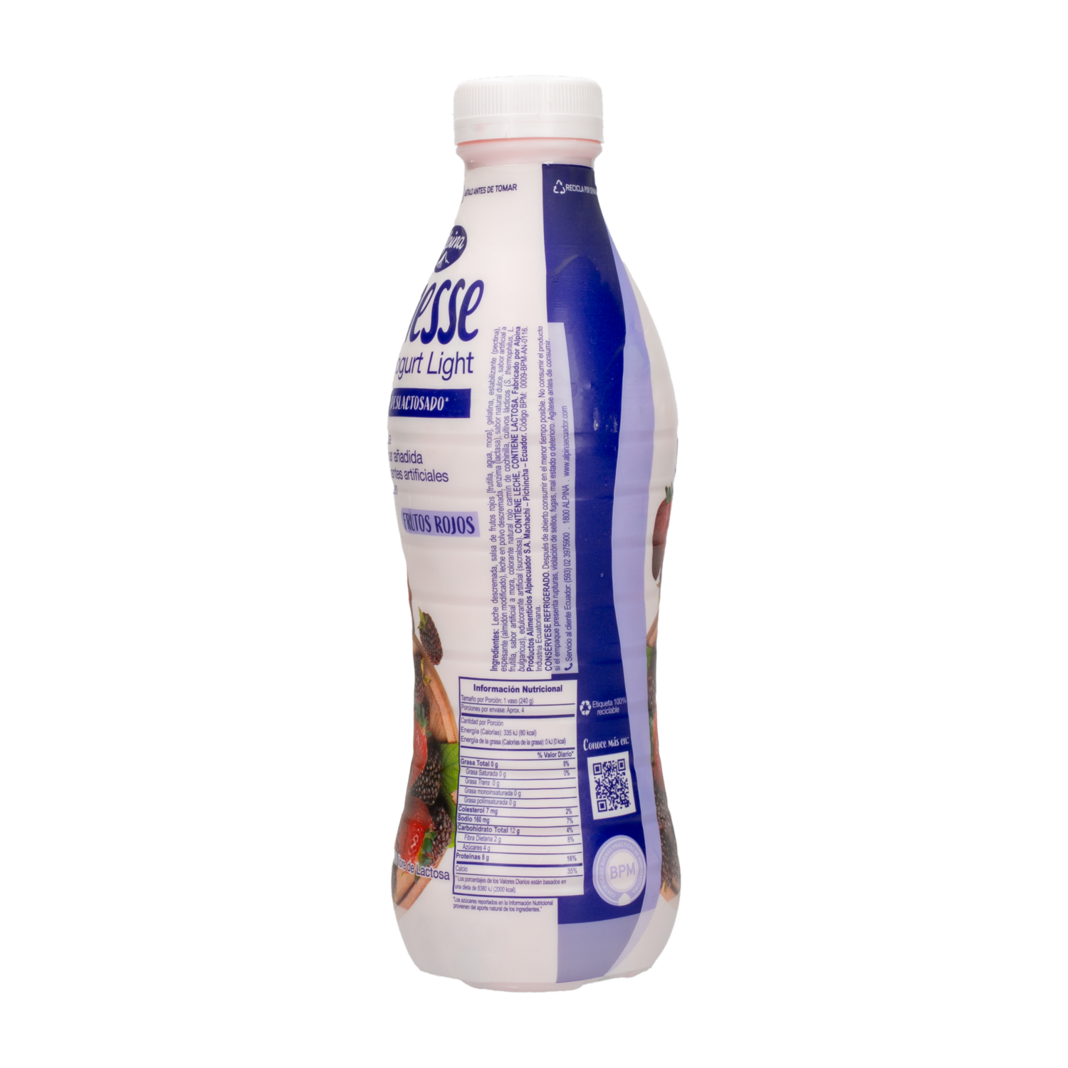 - Yogurt Deslactosado Frutos Rojos FINESSE 950 g. Es una bebida láctea, con fibras y de alta densidad nutricional, fuente de vitaminas, minerales y proteínas que contribuyen a cubrir los requerimientos de diversos micronutrientes