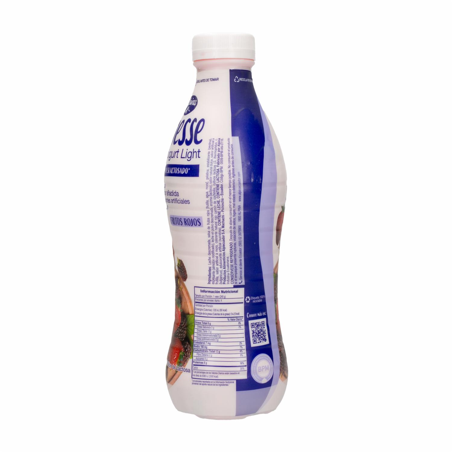 Yogurt Deslactosado Frutos Rojos FINESSE 950 g. Es una bebida láctea, con fibras y de alta densidad nutricional, fuente de vitaminas, minerales y proteínas que contribuyen a cubrir los requerimientos de diversos micronutrientes