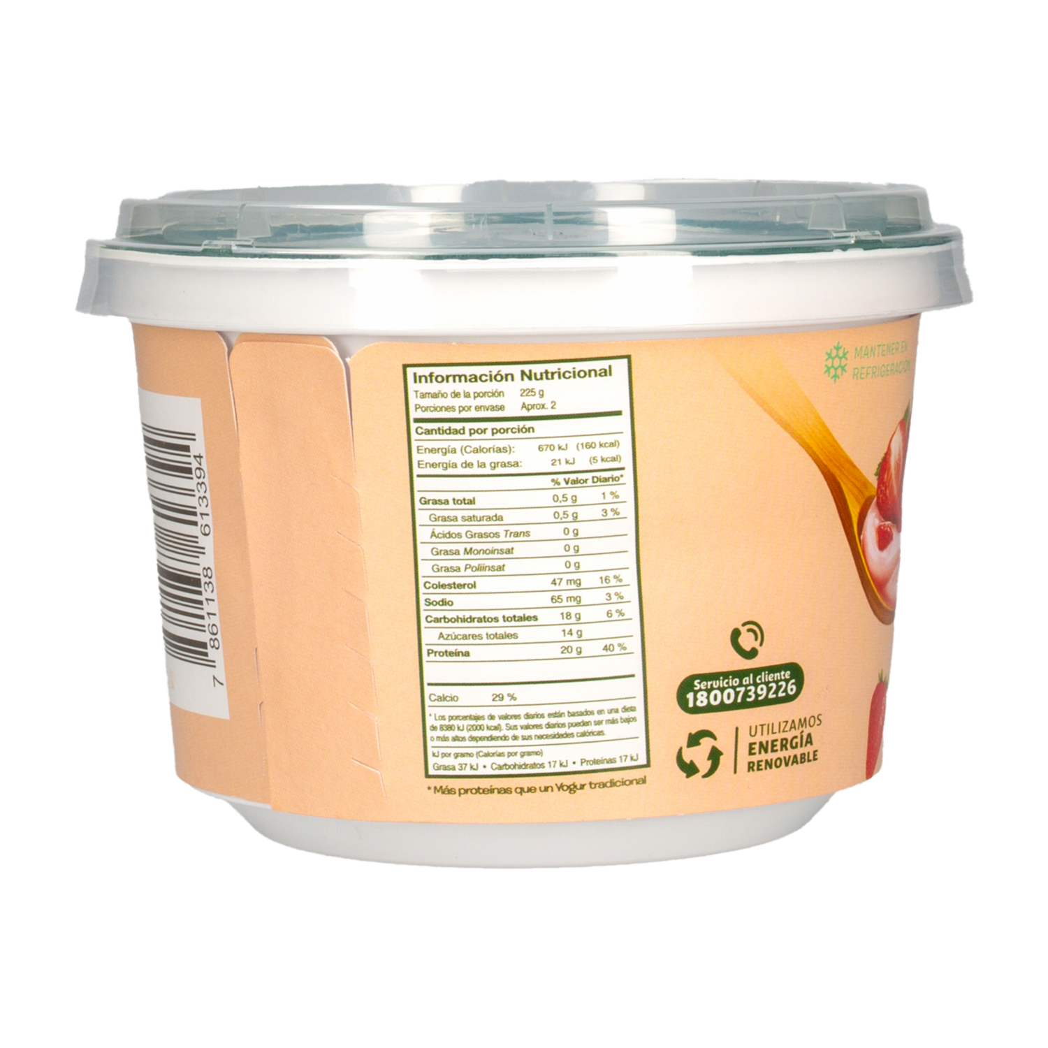 Orgullosamente un yogurt con 0% grasa y bajo en azúcares, posee una deliciosa textura cremosa que lo hace el snack saludable perfecto para llevar una dieta balanceada, puesto contiene mayor cantidad de proteínas que los yogures tradicionales