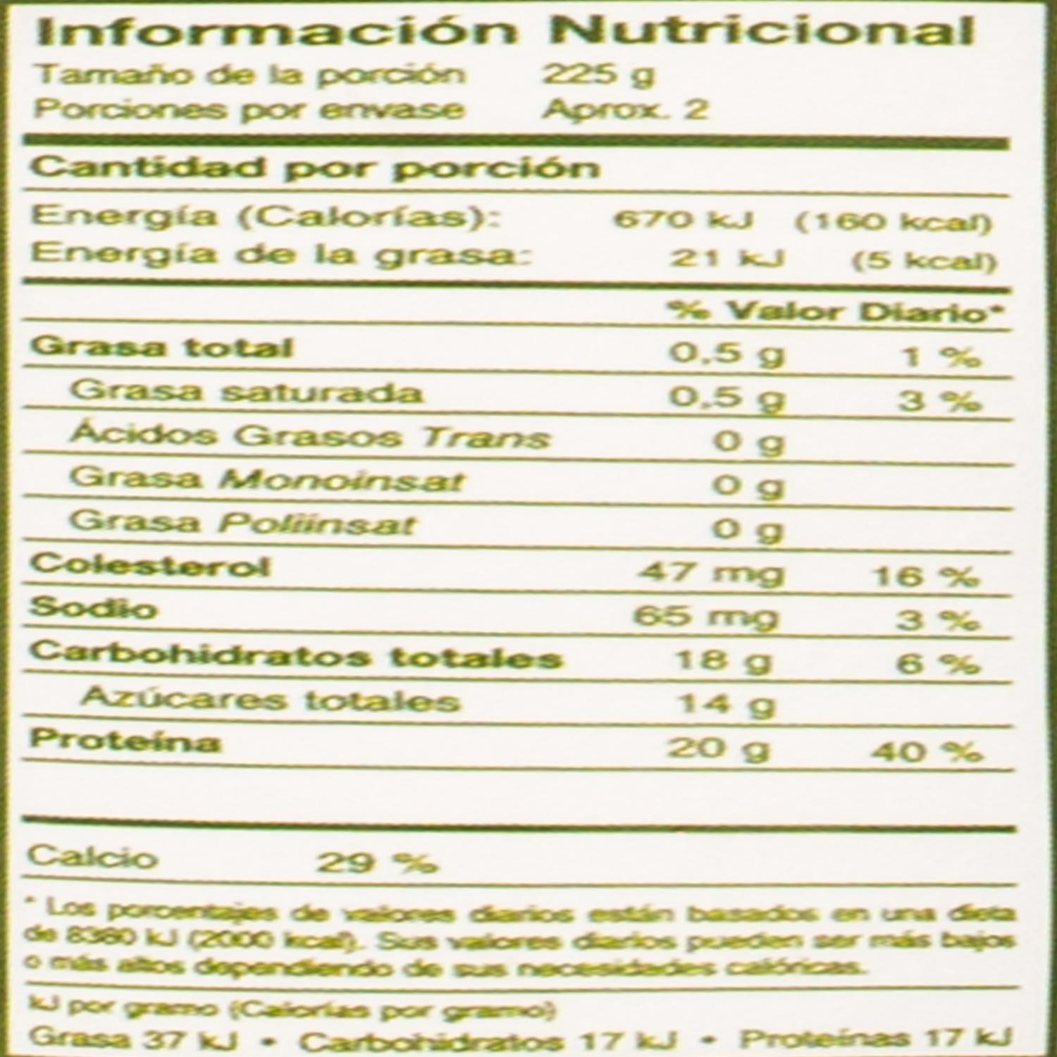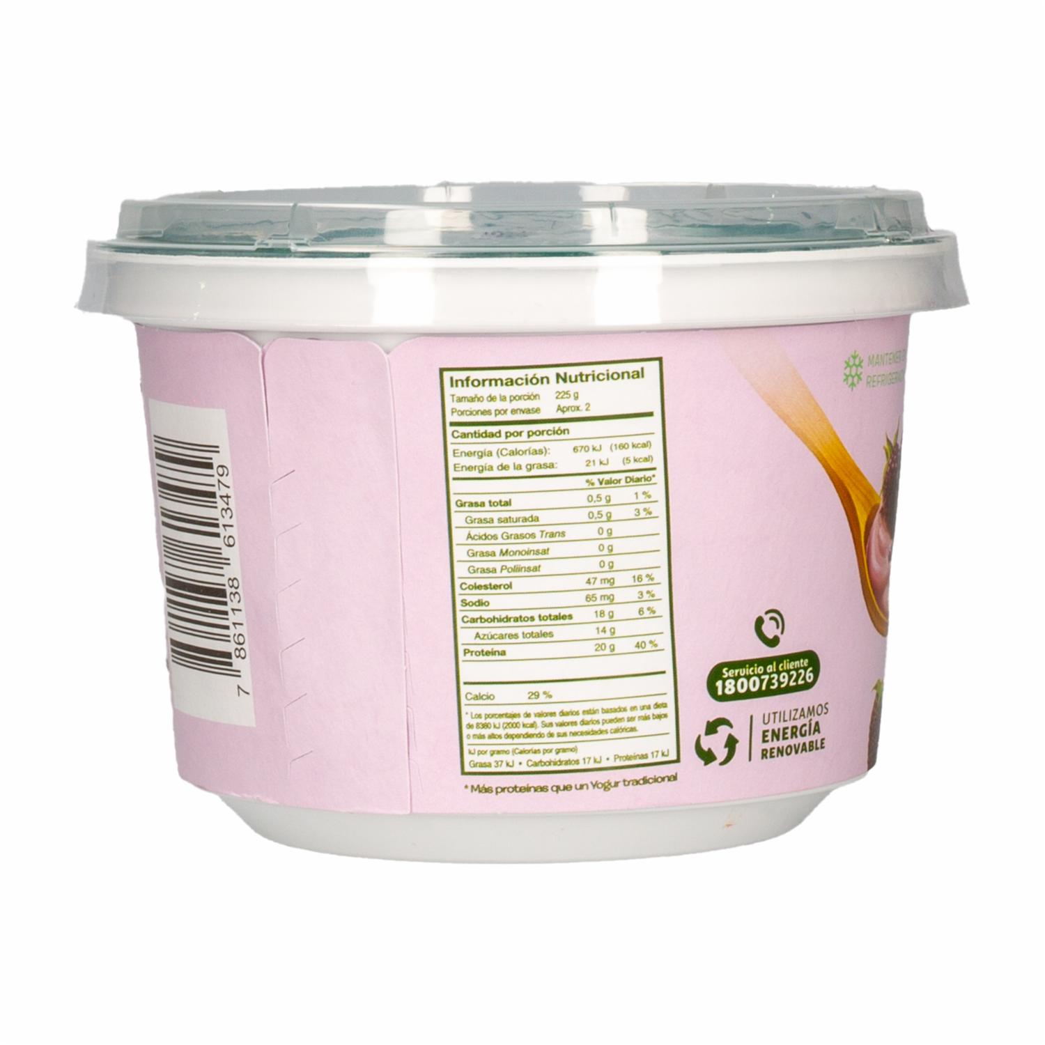 No contiene grasa y contiene 3 veces más proteínas que un yogurt tradicional.