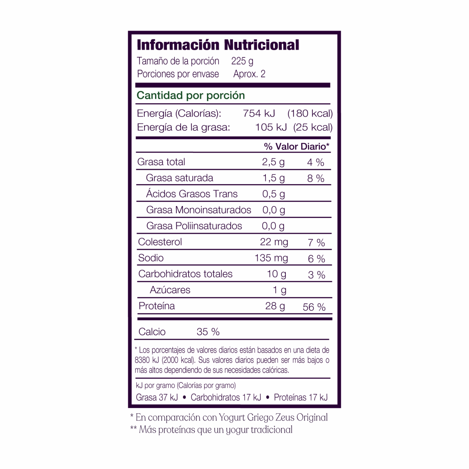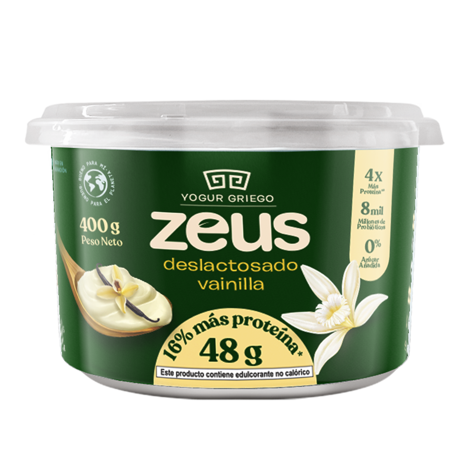 Zeus es un yogurt ligero y nutritivo, con 0% grasa y bajo en azúcares, ideal para cuidar tu bienestar sin renunciar al sabor. Su cremosidad y sus 10 g de proteína por porción lo convierten en una excelente opción para mantener una alimentación equilibrada y llena de energía